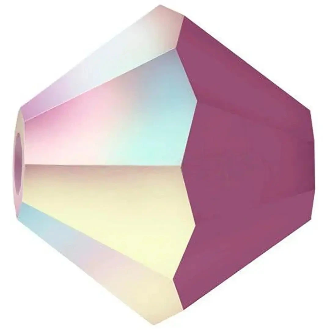Preciosa crystal beads Bicone in Amethyst Matte AB have a smooth thread hole and are multi-faceted to reflect the light, making them perfect to create bespoke designs. Preciosa Bicone Beads have a cylindrical shape and taper towards both ends to create a unique bi-conical shape. The multi-faceted surface of these beads, which narrows towards each end, adds texture, depth, and sparkle to different jewellery and custom-made designs.