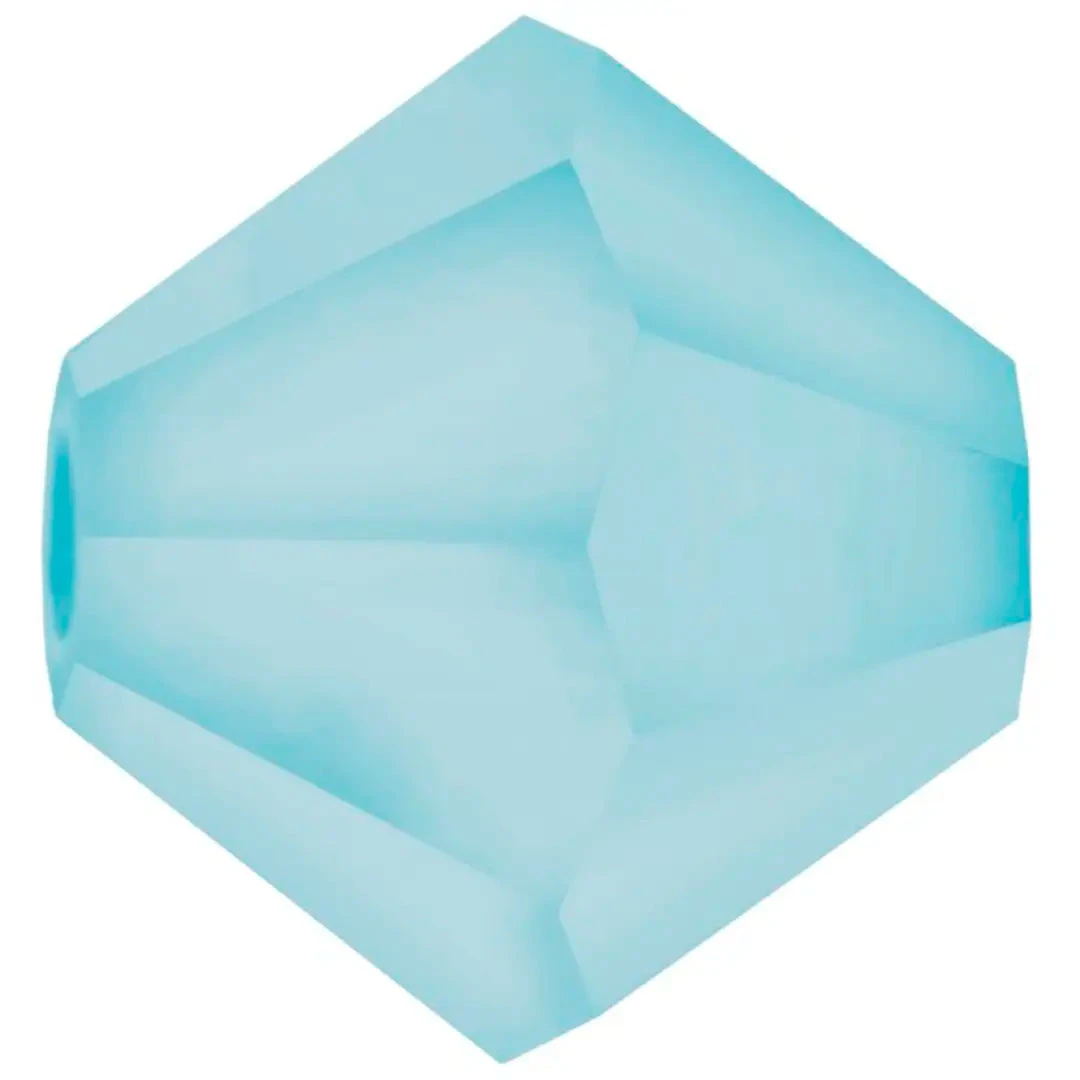 Preciosa crystal beads Bicone in Aquamarine Matte have a smooth thread hole and are multi-faceted to reflect the light, making them perfect to create bespoke designs. Preciosa Bicone Beads have a cylindrical shape and taper towards both ends to create a unique bi-conical shape. The multi-faceted surface of these beads, which narrows towards each end, adds texture, depth, and sparkle to different jewellery and custom-made designs.