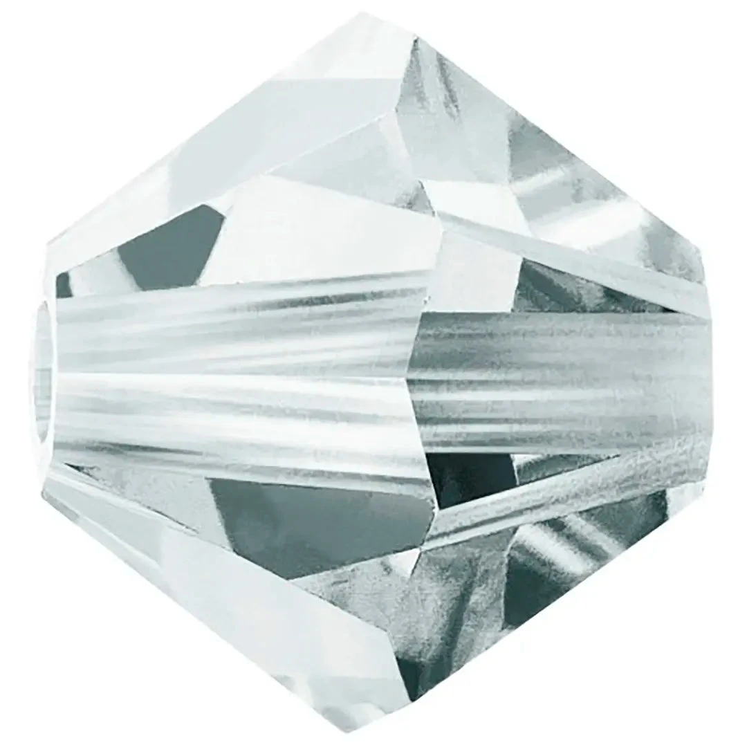 Preciosa crystal beads Bicone in Crystal Argent Flare have a smooth thread hole and are multi-faceted to reflect the light, making them perfect to create bespoke designs. Preciosa Bicone Beads have a cylindrical shape and taper towards both ends to create a unique bi-conical shape. The multi-faceted surface of these beads, which narrows towards each end, adds texture, depth, and sparkle to different jewellery and custom-made designs.