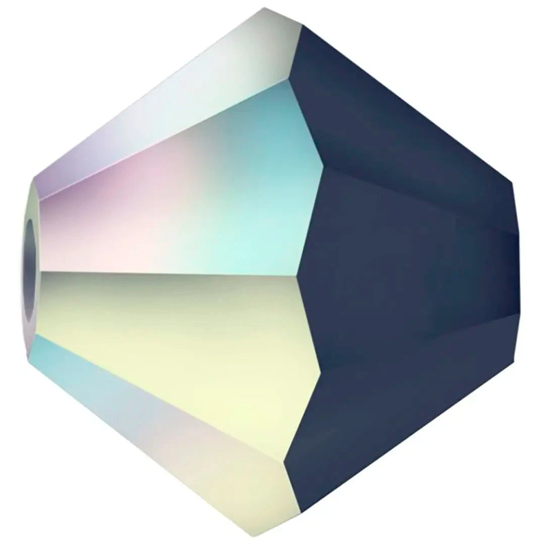 Preciosa crystal beads Bicone in Montana Matte AB have a smooth thread hole and are multi-faceted to reflect the light, making them perfect to create bespoke designs. Preciosa Bicone Beads have a cylindrical shape and taper towards both ends to create a unique bi-conical shape. The multi-faceted surface of these beads, which narrows towards each end, adds texture, depth, and sparkle to different jewellery and custom-made designs.