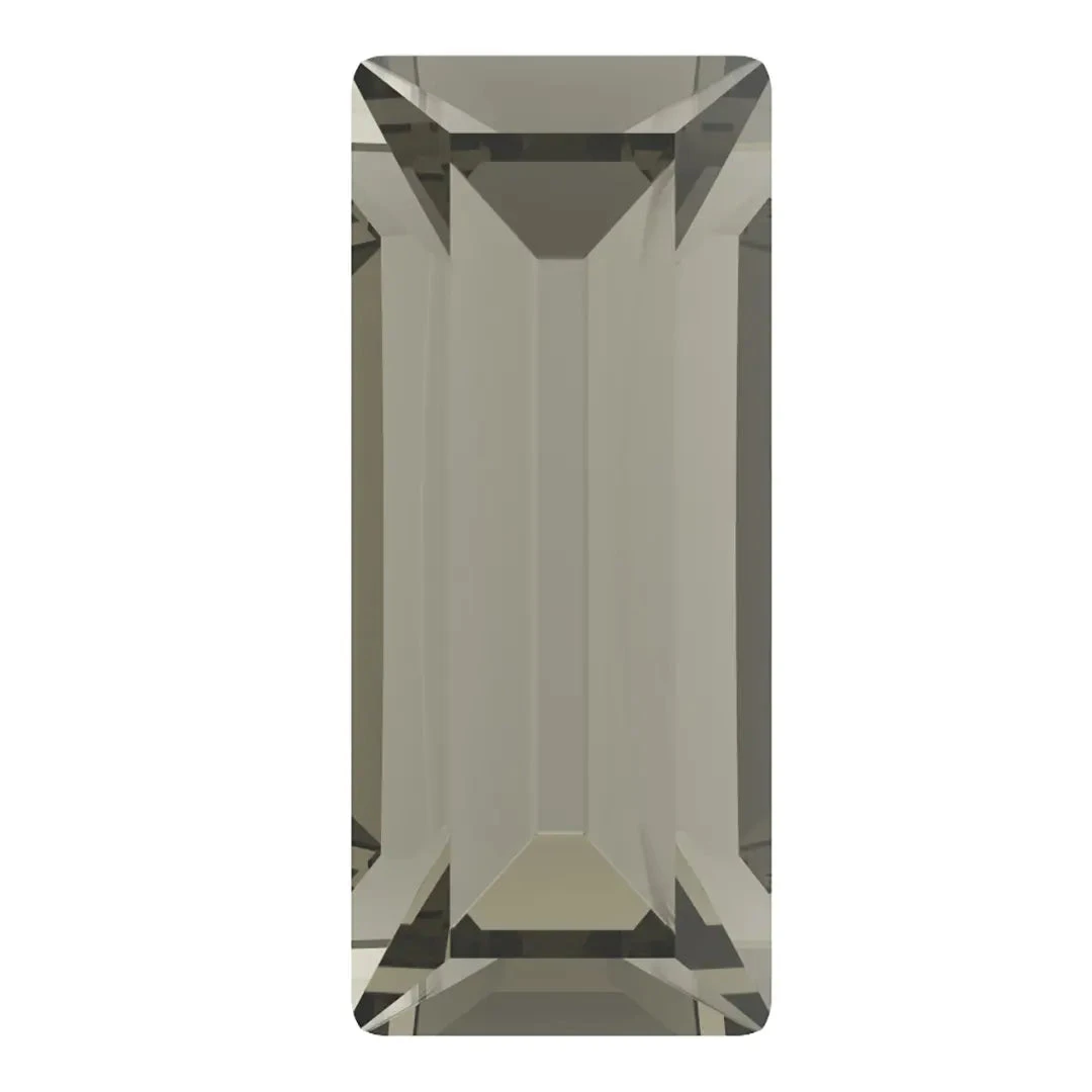 Preciosa fancy stones Baguette in Black Diamond are multi faceted pointed back crystals that have no thread hole and can be applied to fabric or to create jewellery designs using metal settings or in pre-made cavities. Preciosa baguette shaped crystals have an elongated and slim form that resembles the French bread baguette. These rhinestones feature straight sides and pointed tips to emphasize their stretched-out appearance. The Preciosa baguette rhinestones are versatile in their use, as they can be utilized as a standalone crystal or in combination with other shaped crystals to create complex and eye-catching designs.
