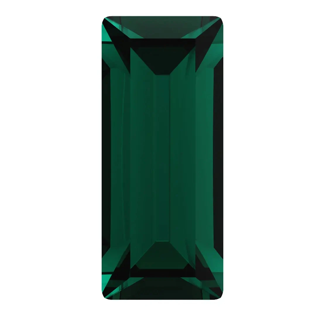 Preciosa fancy stones Baguette in Emerald are multi faceted pointed back crystals that have no thread hole and can be applied to fabric or to create jewellery designs using metal settings or in pre-made cavities. Preciosa baguette shaped crystals have an elongated and slim form that resembles the French bread baguette. These rhinestones feature straight sides and pointed tips to emphasize their stretched-out appearance. The Preciosa baguette rhinestones are versatile in their use, as they can be utilized as a standalone crystal or in combination with other shaped crystals to create complex and eye-catching designs.