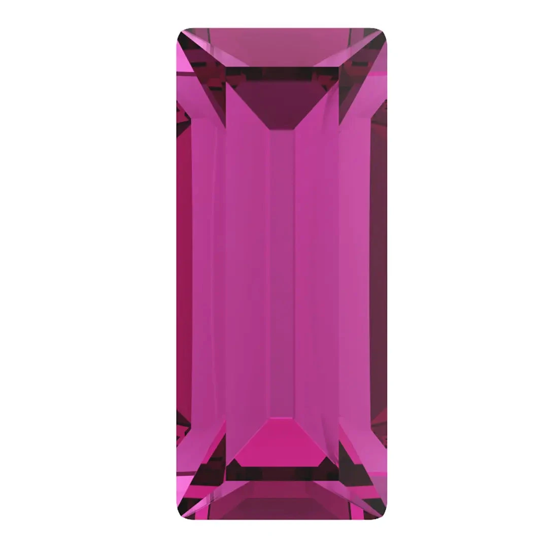 Preciosa fancy stones Baguette in Fuchsia are multi faceted pointed back crystals that have no thread hole and can be applied to fabric or to create jewellery designs using metal settings or in pre-made cavities. Preciosa baguette shaped crystals have an elongated and slim form that resembles the French bread baguette. These rhinestones feature straight sides and pointed tips to emphasize their stretched-out appearance. The Preciosa baguette rhinestones are versatile in their use, as they can be utilized as a standalone crystal or in combination with other shaped crystals to create complex and eye-catching designs.