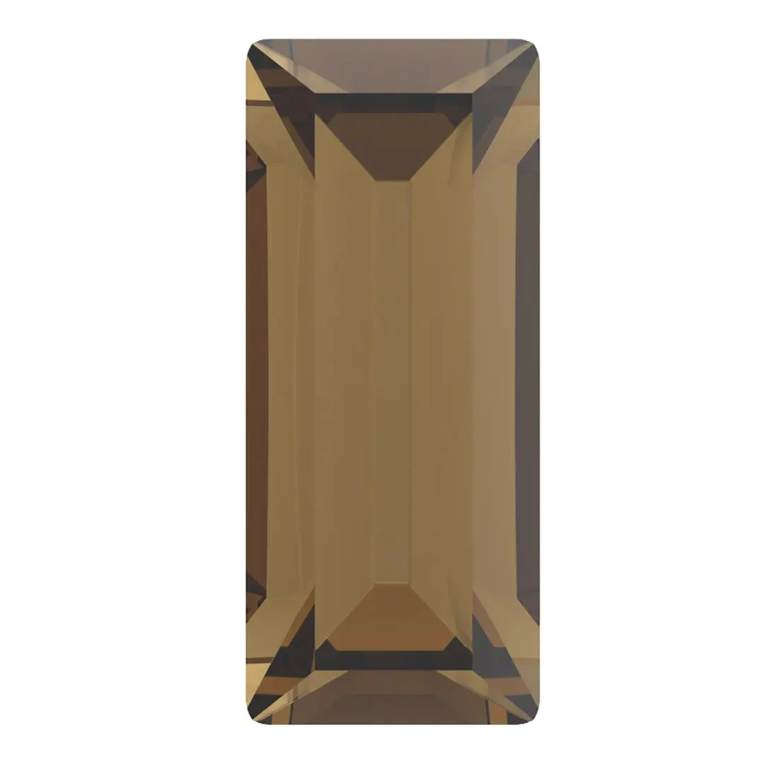 Preciosa fancy stones Baguette in Smoked Topaz are multi faceted pointed back crystals that have no thread hole and can be applied to fabric or to create jewellery designs using metal settings or in pre-made cavities. Preciosa baguette shaped crystals have an elongated and slim form that resembles the French bread baguette. These rhinestones feature straight sides and pointed tips to emphasize their stretched-out appearance. The Preciosa baguette rhinestones are versatile in their use, as they can be utilized as a standalone crystal or in combination with other shaped crystals to create complex and eye-catching designs.