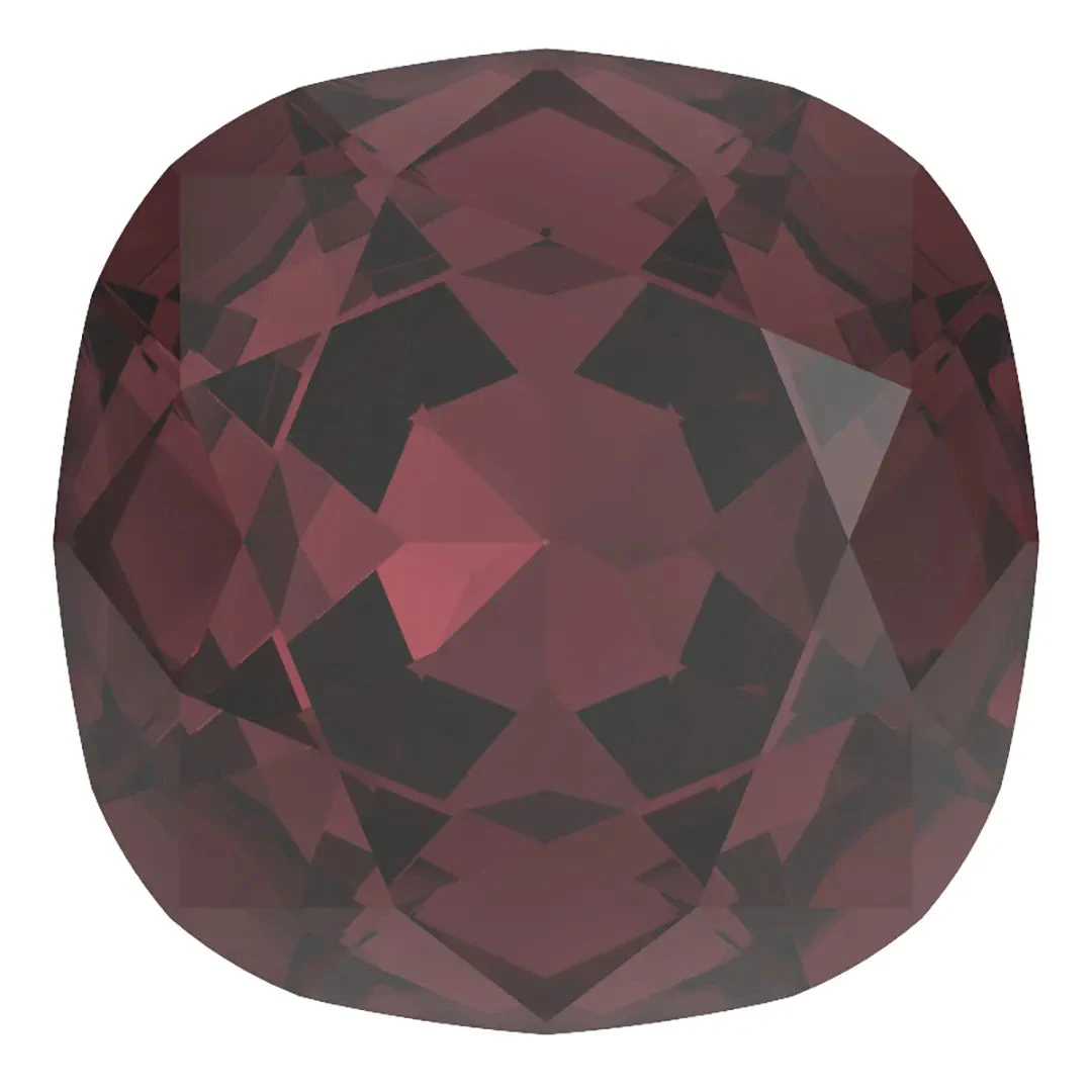 Preciosa fancy stones Cushion Square in Burgundy are multi faceted pointed back crystals that have no thread hole and can be applied to fabric or to create jewellery designs using metal settings or in pre-made cavities. Preciosa cushion square stone is a type of crystal stone that boasts a square shape with rounded edges, lending it a cushion-like look. The stone is skillfully cut with numerous facets, elevating its radiance and producing a stunning sparkle.