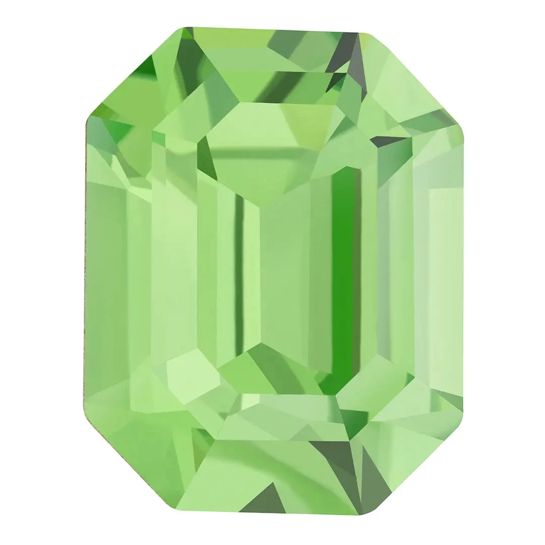 Preciosa fancy stones Octagon in Peridot are multi faceted pointed back crystals that have no thread hole and can be applied to fabric or to create jewellery designs using metal settings or in pre-made cavities. Preciosa Octagon shaped crystals feature a classic octagonal shape with a pointed top and bottom. Preciosa Octagon fancy stone is a crystal component with a timeless octagonal shape and meticulously symmetrical faceting. Its neat and glistening appearance has made it a sought-after option for introducing a touch of refinement and gracefulness to jewellery designs.