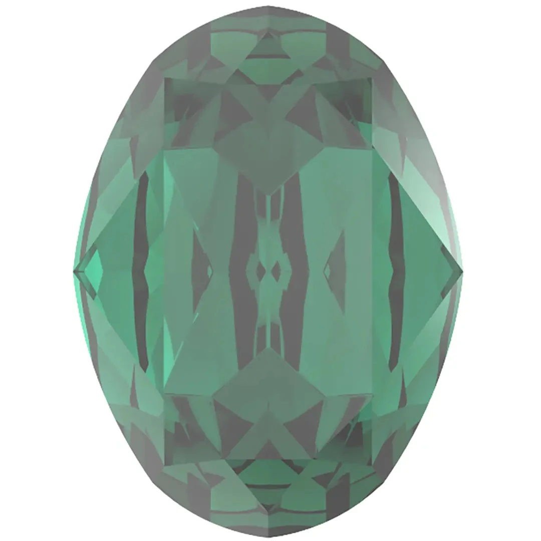 Preciosa fancy stones Oval in Emerald are multi faceted pointed back crystals that have no thread hole and can be applied to fabric or to create jewellery designs using metal settings or in pre-made cavities. Preciosa oval shaped crystals feature an elongated and egg-shaped design, with two rounded ends that have been skillfully faceted to produce a breathtaking multi-dimensional effect.