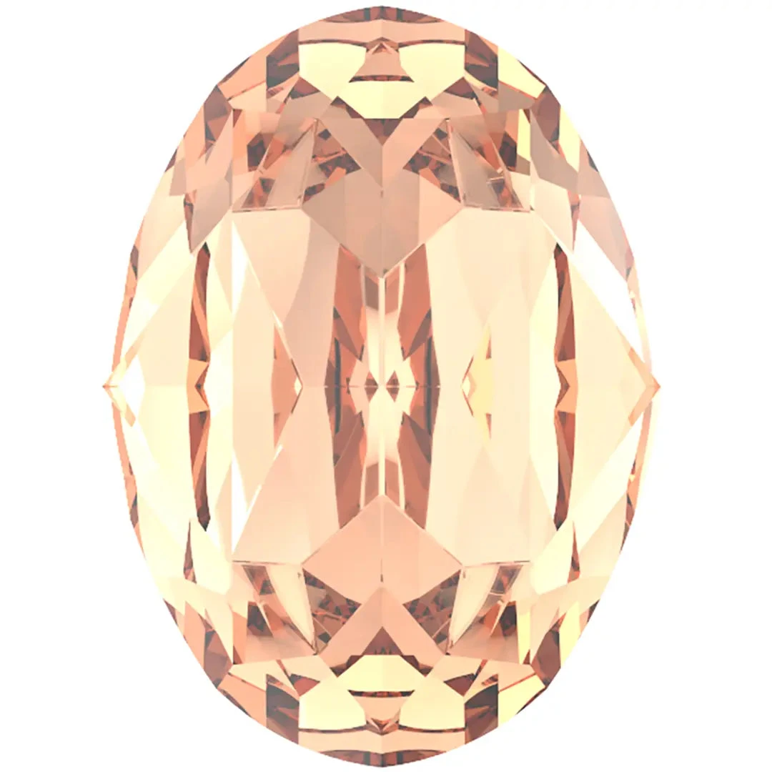 Preciosa fancy stones Oval in Light Peach are multi faceted pointed back crystals that have no thread hole and can be applied to fabric or to create jewellery designs using metal settings or in pre-made cavities. Preciosa oval shaped crystals feature an elongated and egg-shaped design, with two rounded ends that have been skillfully faceted to produce a breathtaking multi-dimensional effect.