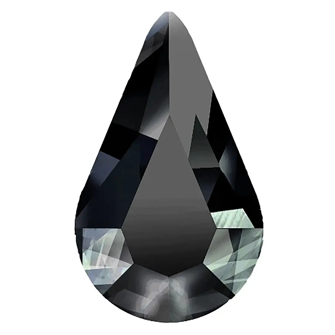 Preciosa fancy stones Pear in Black Diamond are multi faceted pointed back crystals that have no thread hole and can be applied to fabric or to create jewellery designs using metal settings or in pre-made cavities. Preciosa pear shaped crystals showcase a traditional pear shape with a tapered design that has a rounded base and a pointed top, resulting in a graceful and balanced appearance. These crystals have a meticulously cut faceted surface that creates an exceptional and dazzling shine, reflecting light from every angle.