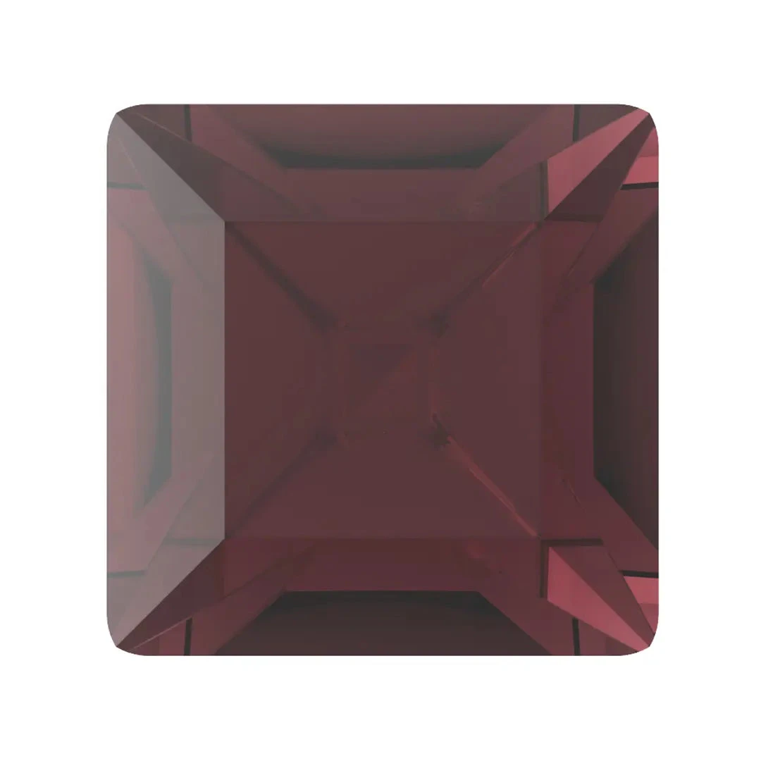 Preciosa fancy stones Square in Burgundy are multi faceted pointed back crystals that have no thread hole and can be applied to fabric or to create jewellery designs using metal settings or in pre-made cavities. Preciosa square shaped crystals are designed with four equal sides forming a square shape that features a flat top and simple bevelled edges. The bevel adds a touch of softness to the sharp lines of the square shape.