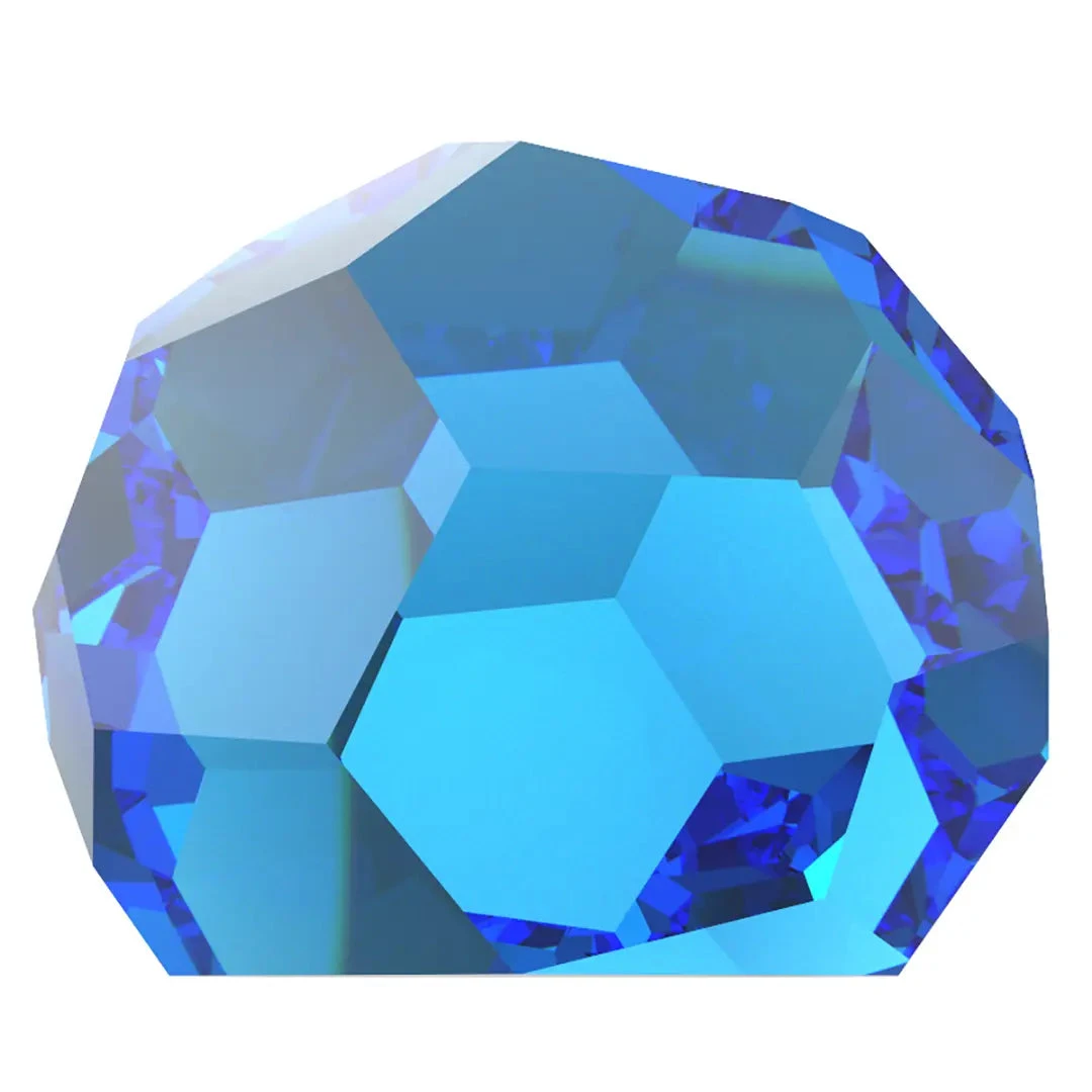 Preciosa rhinestones non hotfix 3/4 Ball in Crystal Bermuda Blue are flat back crystals that can easily be applied to most surfaces with glue. Preciosa 3/4 Ball shaped flat back crystals are three dimensional in shape and multi-faceted with a flat bottom.