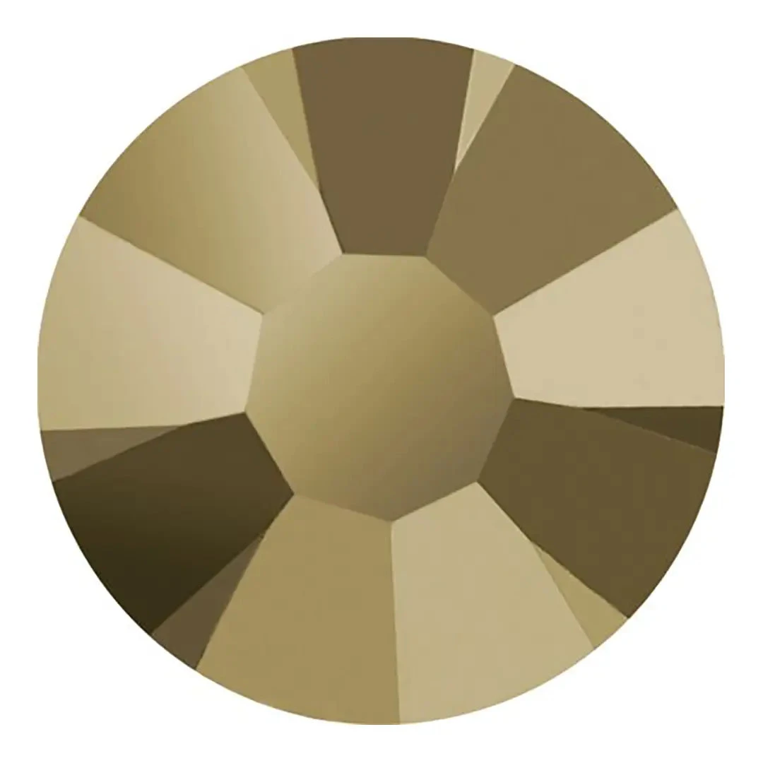 Crystal Monte Carlo are flat back crystals that can easily be applied to most surfaces with glue. Crystal Monte Carlo gold is a warm and luxurious shade of gold that is inspired by the colour of the sun. It is a rich-toned colour that has a strong and opulent appearance, with a hint of yellow and brown undertones that give it a sense of depth and richness. Crystal Monte Carlo gold is often associated with qualities such as prosperity, abundance, and glamour. It is a popular colour in fashion, costume design and dance wear, and is often used to create a lavish and elegant look. Overall, Crystal Monte Carlo gold is a bold and luxurious colour that is associated with a sense of wealth and prosperity. Its rich and warm appearance can add a sense of glamour and sophistication to any design context, making it a popular choice for creating a high-end and luxurious atmosphere.