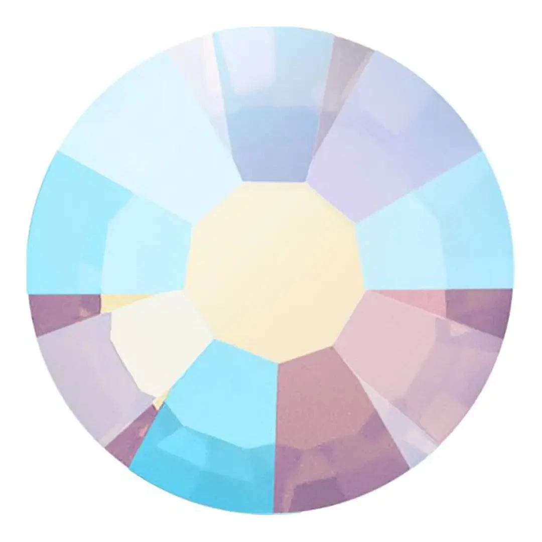 Rose Opal AB are flat back crystals that can easily be applied to most surfaces with glue. Rose Opal AB is a delicate and romantic shade of pink that is named after the flower of the same name. It is a light and gentle colour that is associated with love, beauty, and grace. Rose Opal AB is a versatile colour that can be used in a variety of creative applications, from fashion and nail art to costume design and jewellery. Opal gives the colour a milky appearance due to the colouring in the glass being slightly opaque. The AB (Aurora Borealis) effect is an iridescent coating that covers the top of the crystal, making it shimmer like a rainbow. The base colour of the crystal can still be seen underneath but there is a noticeable pink and blue shine to it as it hits the light.