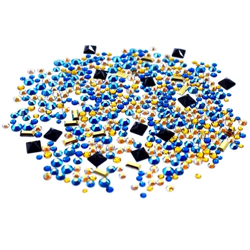 Preciosa rhinestones Pharoh mix contains a variety of round and shaped flat back crystals in a blend of blue and gold colours. Popular with nail technicians and embellishment artists, this mix is a cost effective way to purchase a selection of different crystals.