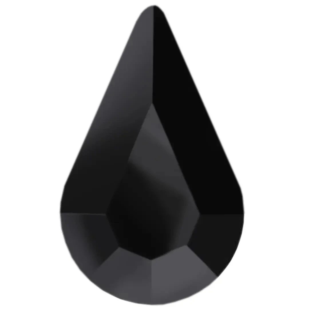 Preciosa rhinestones non hotfix Pear in Jet UNFOILED are flat back crystals that can easily be applied to most surfaces with glue. Preciosa Pear shaped crystals showcase a traditional pear shape with a tapered design that has a rounded base and a pointed top, resulting in a graceful and balanced appearance. These crystals have a meticulously cut faceted surface that creates an exceptional and dazzling shine, reflecting light from every angle.