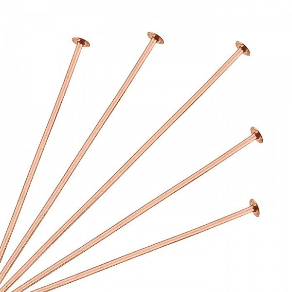 A Headpin is a piece of wire with a “head” (stopper) at one end that prevents beads from sliding off. This rose gold plated Flat Headpin measuring 2 inches is a thin, straight wire with a flat head at one end. It is commonly used in jewellery making to create dangles or to hold beads in place. The bead is threaded onto the straight wire, which is then bent at a right angle to secure the bead in place. The excess wire is then trimmed and formed into a loop using round nose pliers, creating a dangle that can be attached to other components in the jewellery piece.
