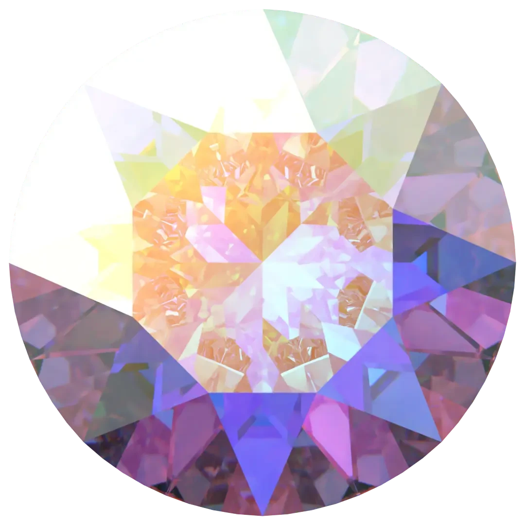 Serinity chatons Round (1028 & 1088) in Crystal AB are multi faceted pointed back crystals that are used with metal settings to create bespoke jewellery and embellishment designs. Serinity Round chatons are crystal components with a flat top and pointed back that are widely used in creative industries, including jewellery making. These versatile components can be easily mounted into metal settings or attached to surfaces such as fabrics or plastics to add a touch of sparkle and shine to any design.
