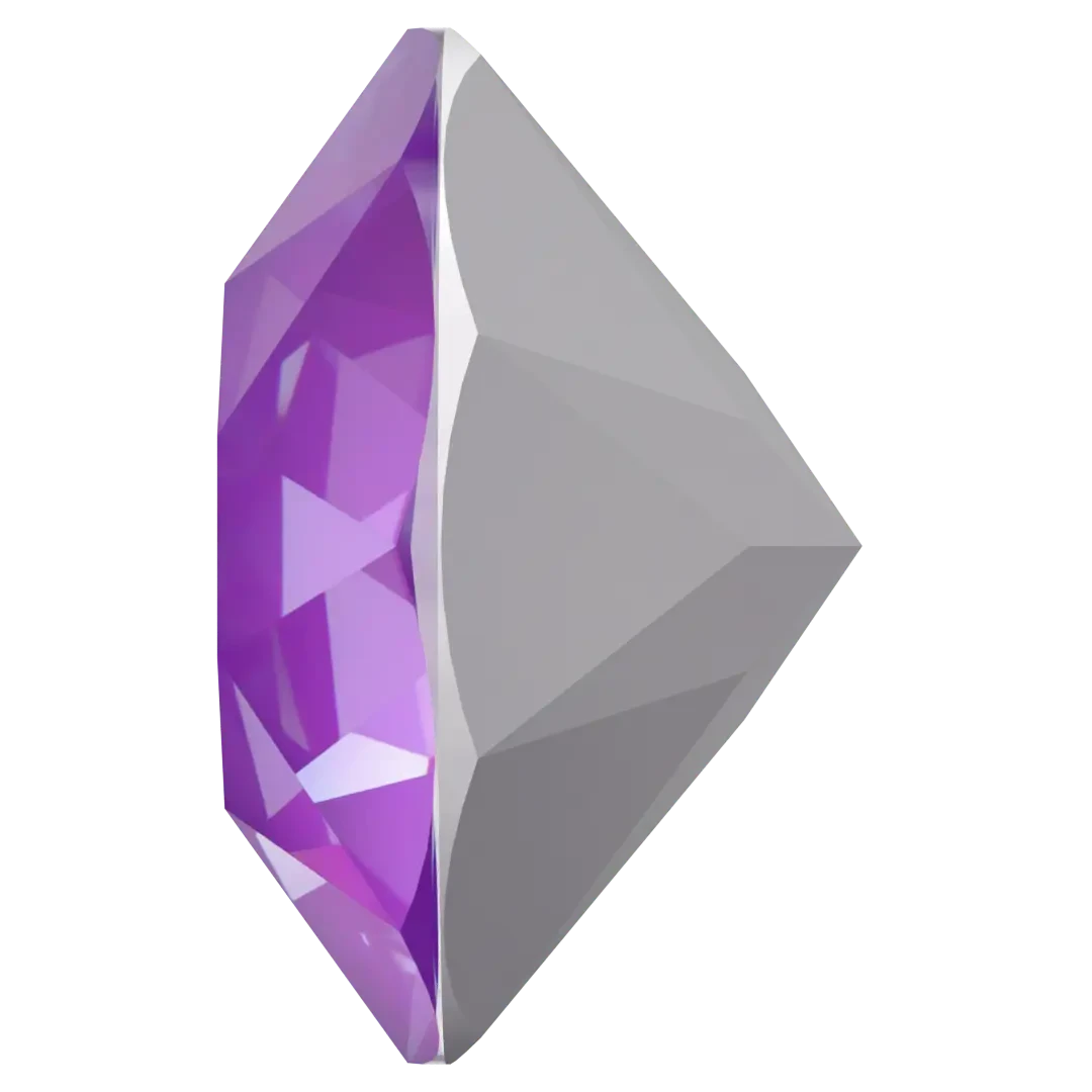 Serinity chatons Round (1028 & 1088) in Crystal Electric Violet Ignite UNFOILED are multi faceted pointed back crystals that are used with metal settings to create bespoke jewellery and embellishment designs. Serinity Round chatons are crystal components with a flat top and pointed back that are widely used in creative industries, including jewellery making. These versatile components can be easily mounted into metal settings or attached to surfaces such as fabrics or plastics to add a touch of sparkle and shine to any design.