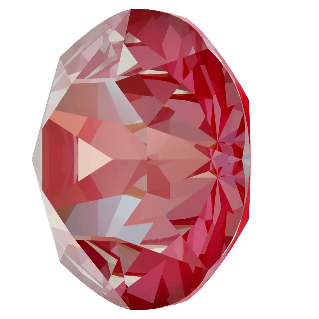 Serinity chatons Round (1028 & 1088) in Crystal Royal Red Delite UNFOILED are multi faceted pointed back crystals that are used with metal settings to create bespoke jewellery and embellishment designs. Serinity Round chatons are crystal components with a flat top and pointed back that are widely used in creative industries, including jewellery making. These versatile components can be easily mounted into metal settings or attached to surfaces such as fabrics or plastics to add a touch of sparkle and shine to any design.