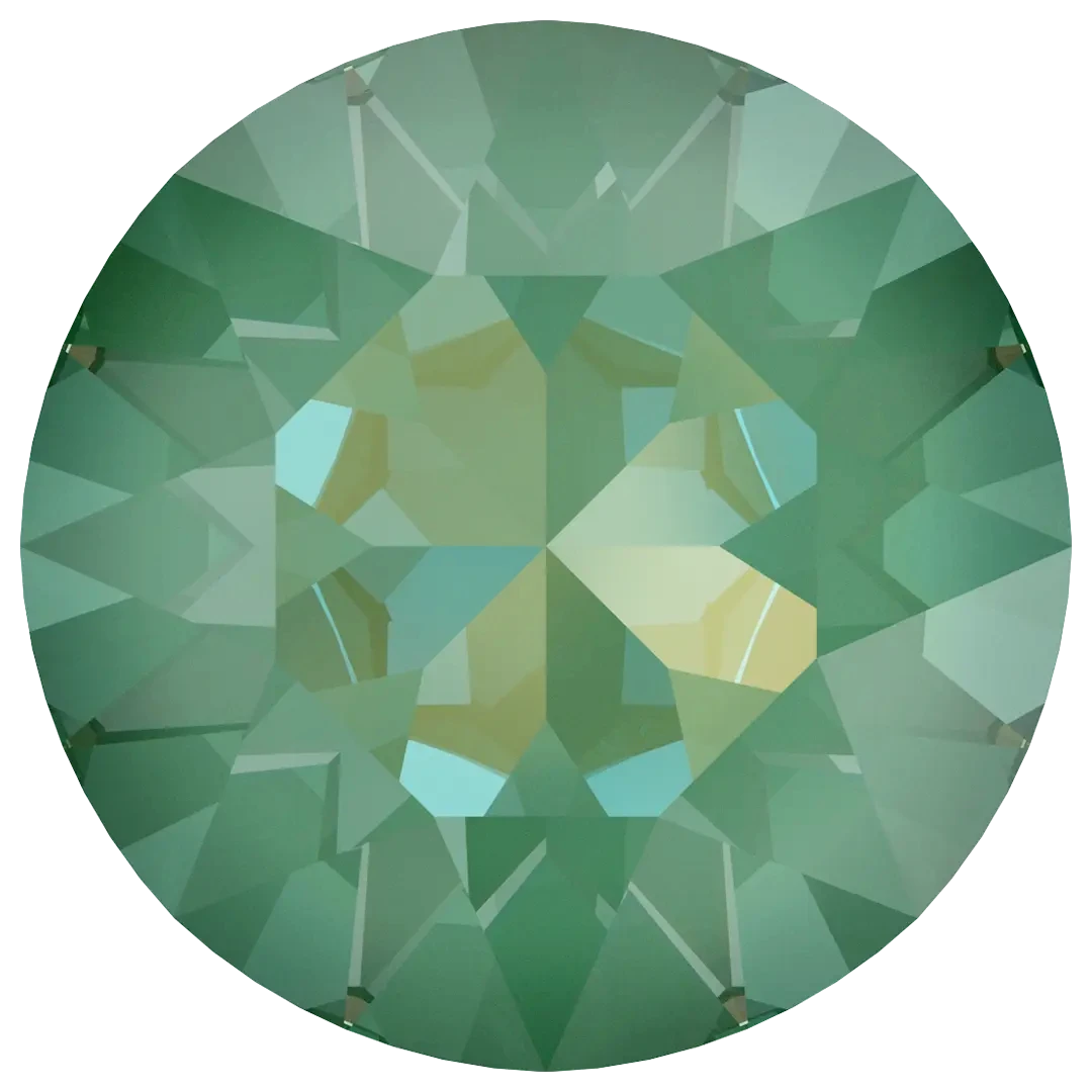 Serinity chatons Round (1028 & 1088) in Crystal Silky Sage Delite UNFOILED are multi faceted pointed back crystals that are used with metal settings to create bespoke jewellery and embellishment designs. Serinity Round chatons are crystal components with a flat top and pointed back that are widely used in creative industries, including jewellery making. These versatile components can be easily mounted into metal settings or attached to surfaces such as fabrics or plastics to add a touch of sparkle and shine to any design.
