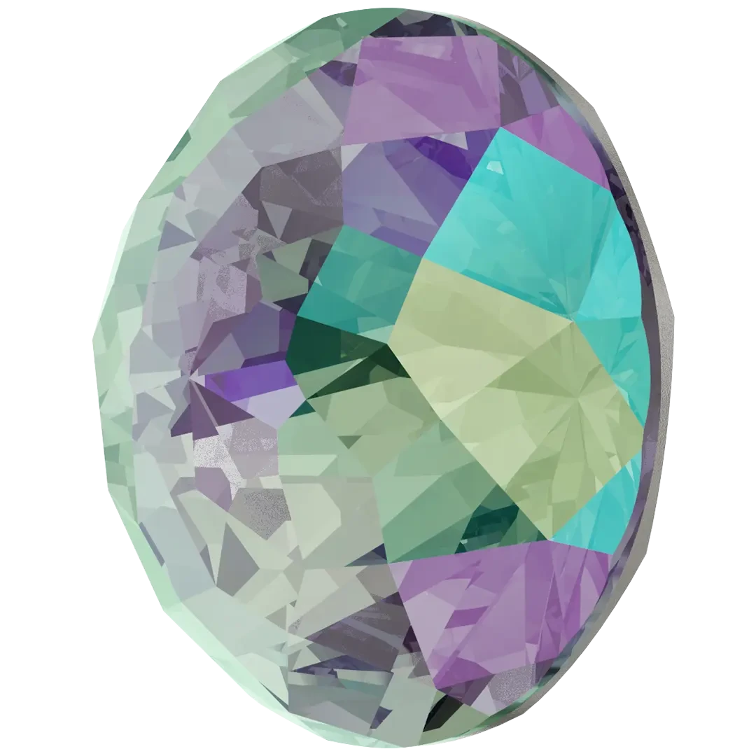 Serinity chatons Brilliant (1400) in Crystal Paradise Shine are multi faceted pointed back crystals that are used with metal settings to create bespoke jewellery and embellishment designs. Serinity Brilliant chaton is a versatile crystal with a polished and sleek appearance. Its multi-faceted, rounded shape and domed top make it suitable for a wide range of jewellery and accessory styles, and add a touch of elegance to any design.