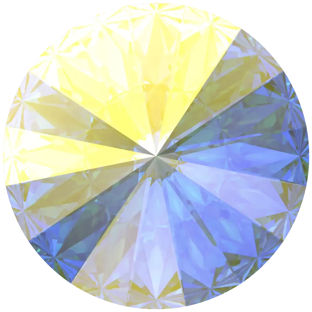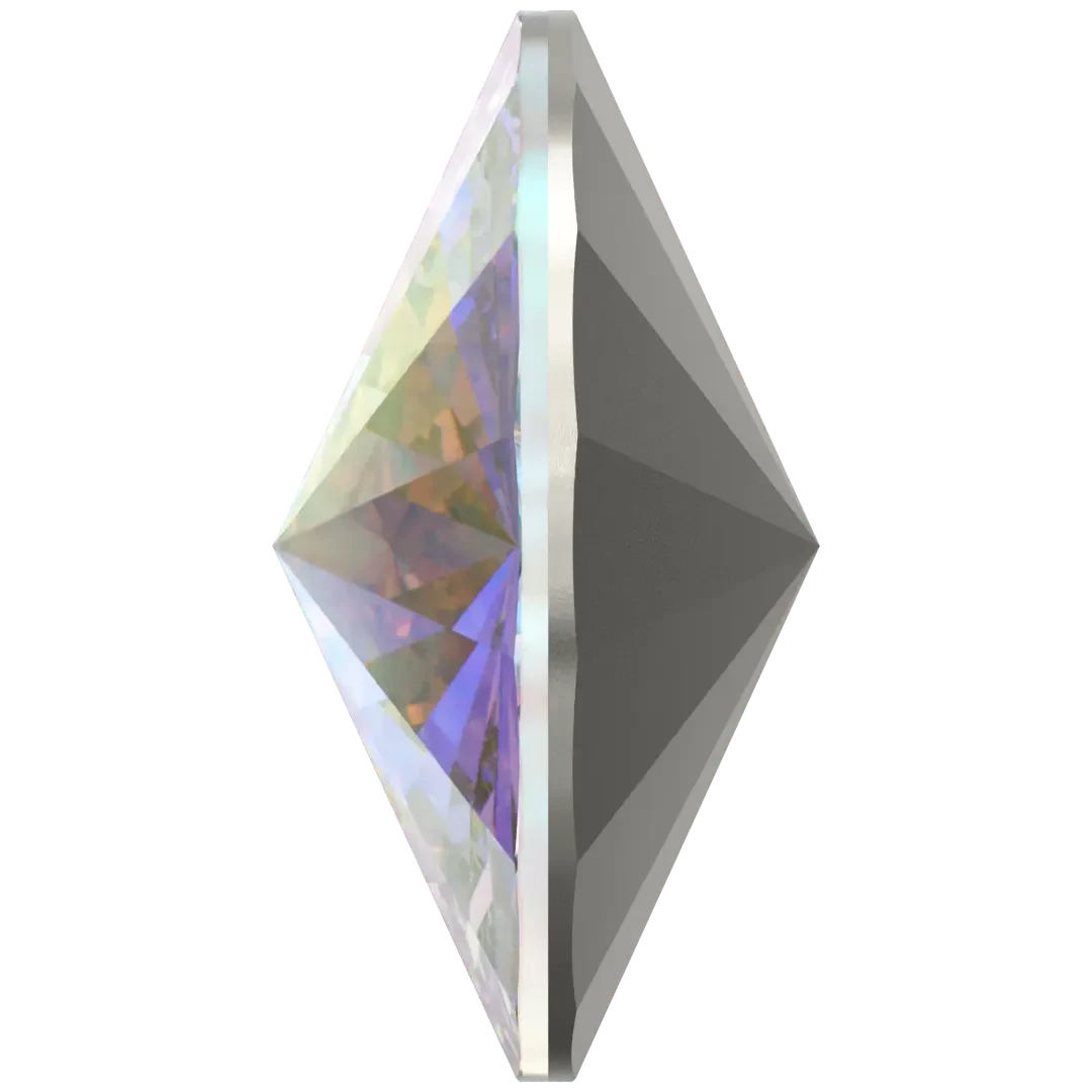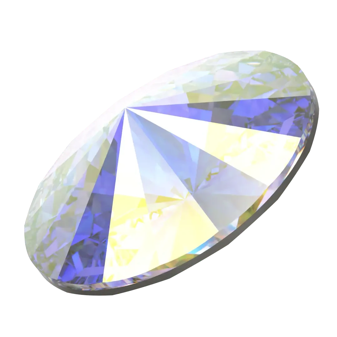Serinity chatons Rivoli (1122) in Crystal AB are multi faceted pointed back crystals that are used with metal settings to create bespoke jewellery and embellishment designs. Serinity Rivoli shaped crystals are uniformly cut glass stones with facets that converge to a point. The underside of the crystal is foiled to reflect light and intensify the colour of the stone, creating a brilliant shine.