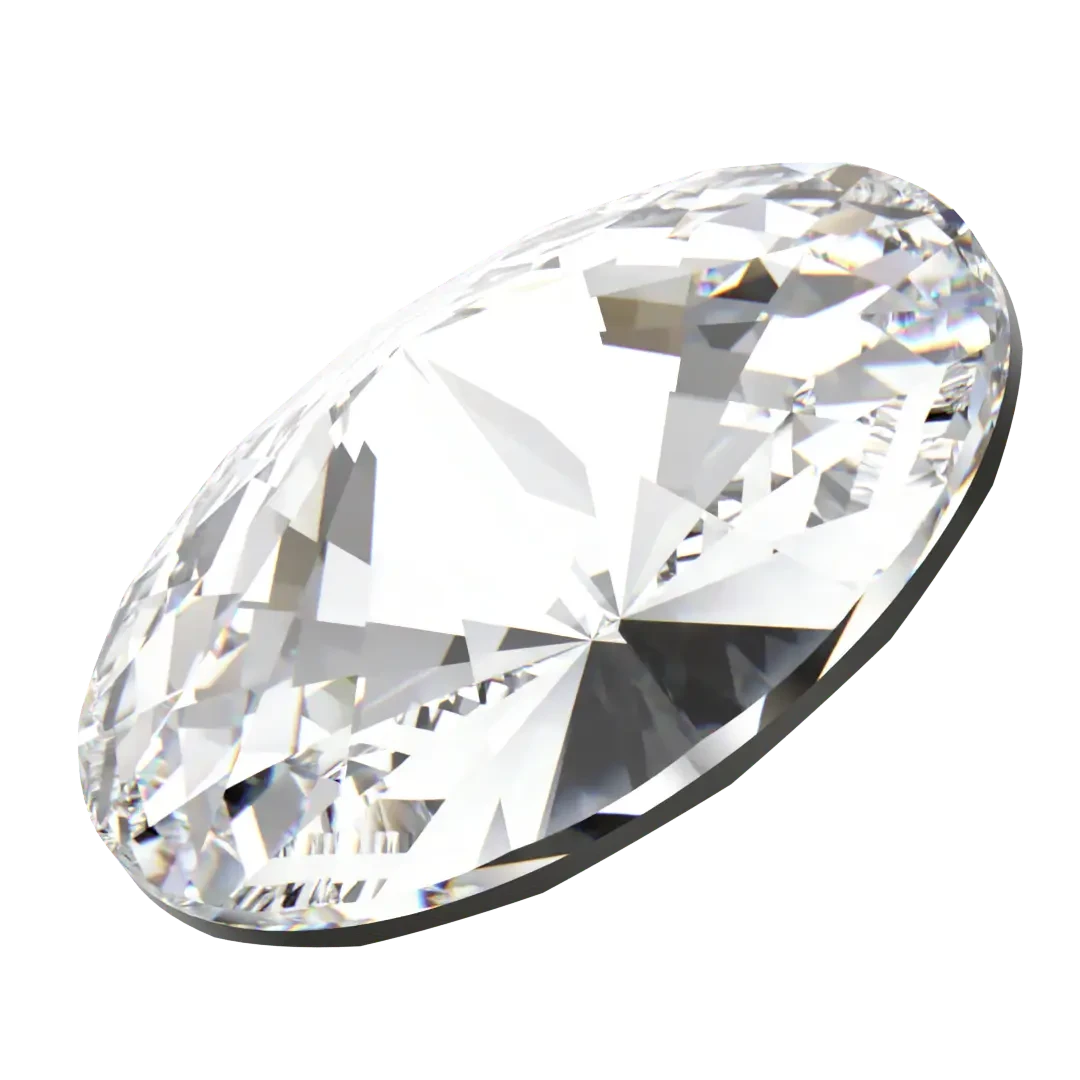 Serinity chatons Rivoli (1122) in Crystal are multi faceted pointed back crystals that are used with metal settings to create bespoke jewellery and embellishment designs. Serinity Rivoli shaped crystals are uniformly cut glass stones with facets that converge to a point. The underside of the crystal is foiled to reflect light and intensify the colour of the stone, creating a brilliant shine.
