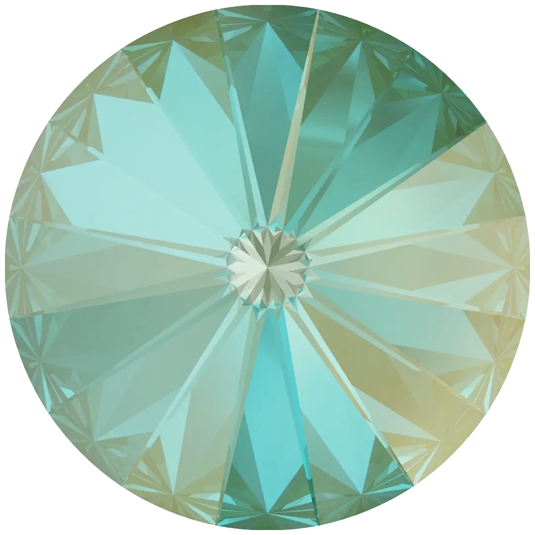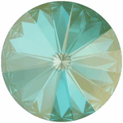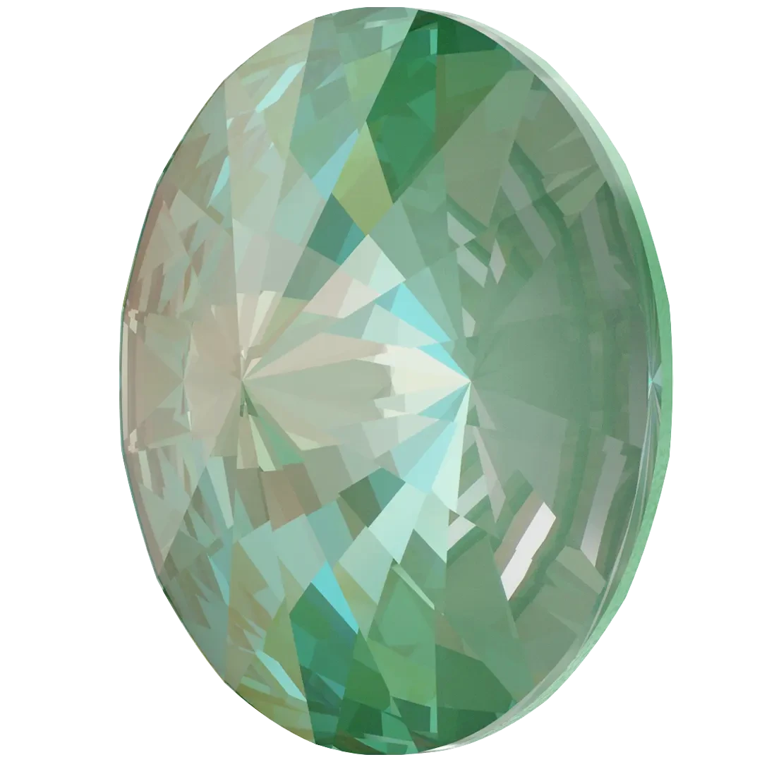 Serinity chatons Rivoli (1122) in Crystal Silky Sage Delite UNFOILED are multi faceted pointed back crystals that are used with metal settings to create bespoke jewellery and embellishment designs. Serinity Rivoli shaped crystals are uniformly cut glass stones with facets that converge to a point. The underside of the crystal is foiled to reflect light and intensify the colour of the stone, creating a brilliant shine.