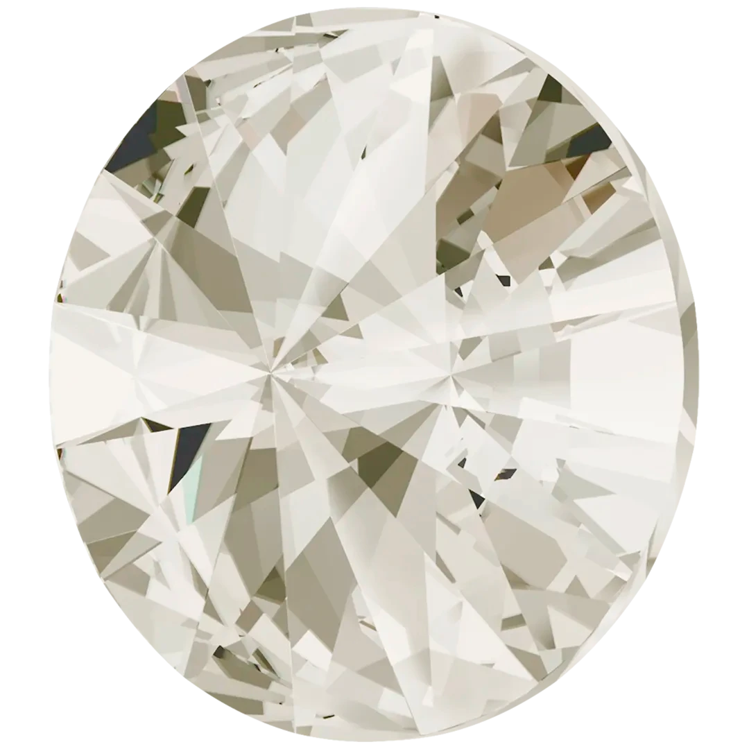 Serinity chatons Rivoli (1122) in Crystal Silver Shade are multi faceted pointed back crystals that are used with metal settings to create bespoke jewellery and embellishment designs. Serinity Rivoli shaped crystals are uniformly cut glass stones with facets that converge to a point. The underside of the crystal is foiled to reflect light and intensify the colour of the stone, creating a brilliant shine.