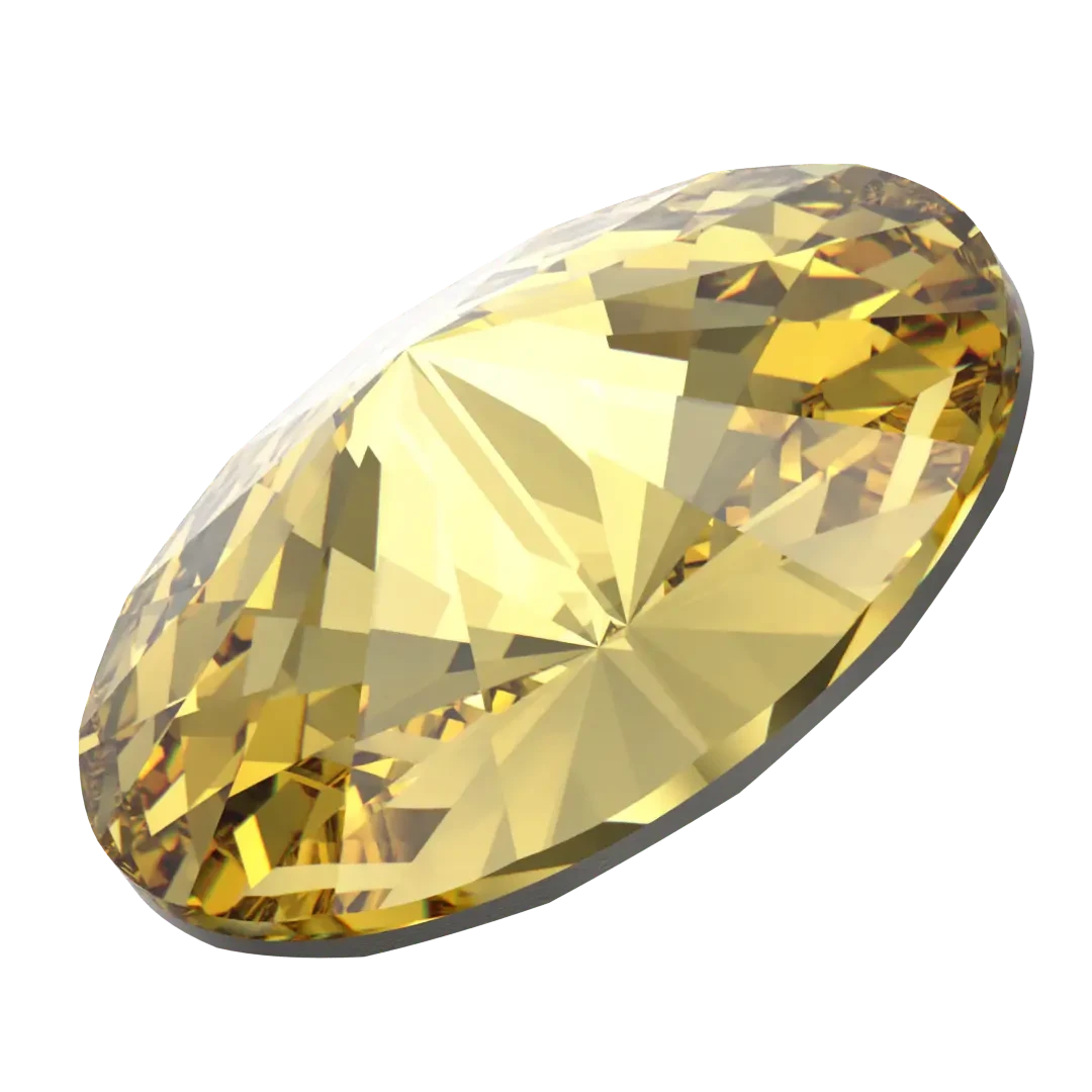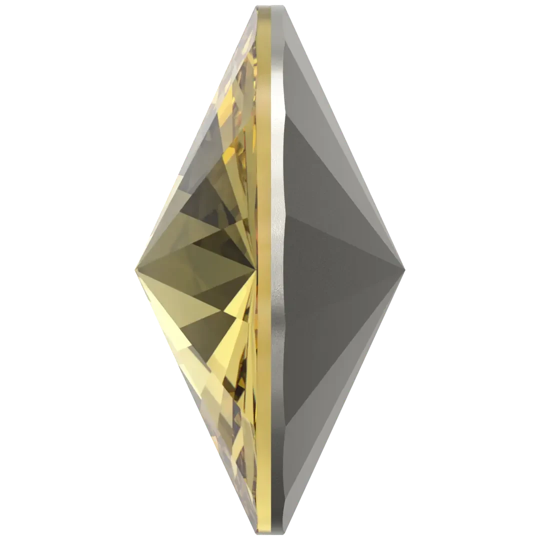 Serinity chatons Rivoli (1122) in Dark Jonquil are multi faceted pointed back crystals that are used with metal settings to create bespoke jewellery and embellishment designs. Serinity rivoli shaped crystals are uniformly cut glass stones with facets that converge to a point. The underside of the crystal is foiled to reflect light and intensify the colour of the stone, creating a brilliant shine.