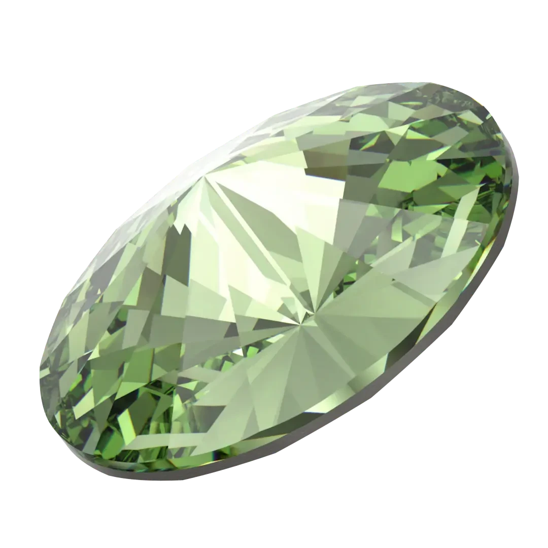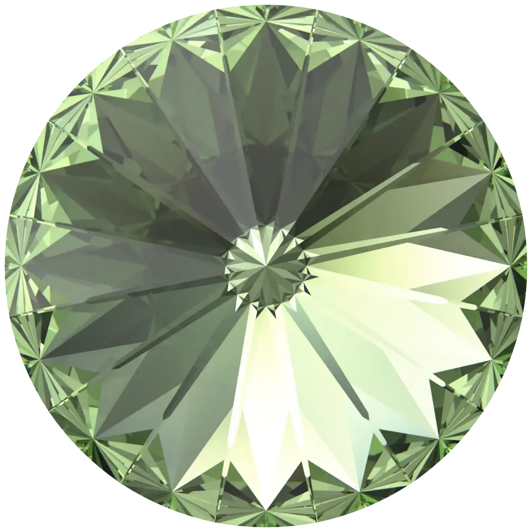 Serinity chatons Rivoli (1122) in Dark Peridot are multi faceted pointed back crystals that are used with metal settings to create bespoke jewellery and embellishment designs. Serinity rivoli shaped crystals are uniformly cut glass stones with facets that converge to a point. The underside of the crystal is foiled to reflect light and intensify the colour of the stone, creating a brilliant shine.