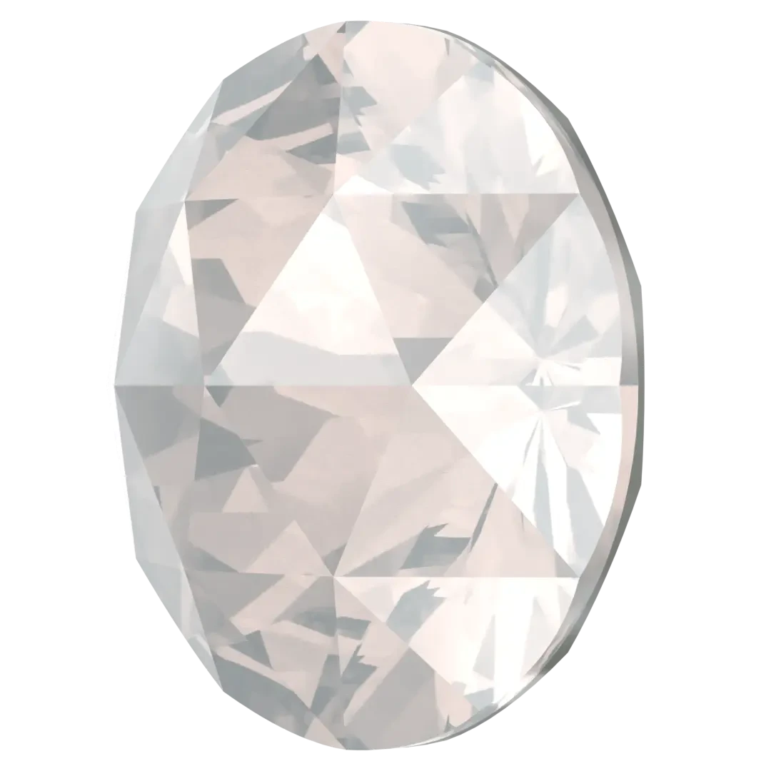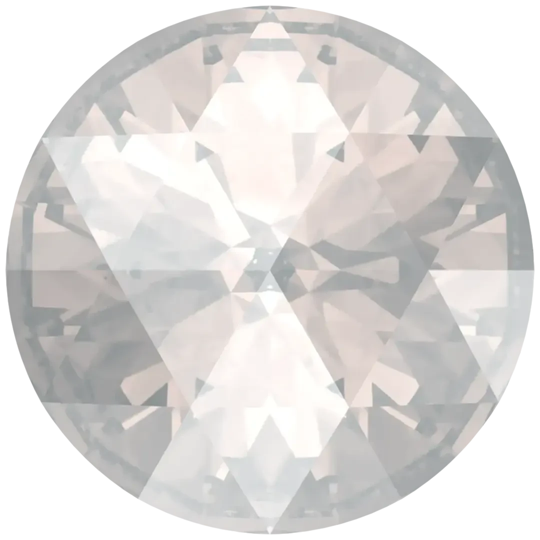 Serinity chatons Round Rose Cut (1401) in White Opal are multi faceted pointed back crystals that are used with metal settings to create bespoke jewellery and embellishment designs. Serinity Rose Cut shaped crystals are circular in shape and cut in a unique faceting pattern. These crystals have a flat base and a rounded top with triangular facets arranged in a circular pattern around the centre, resulting in a multidimensional and captivating appearance.