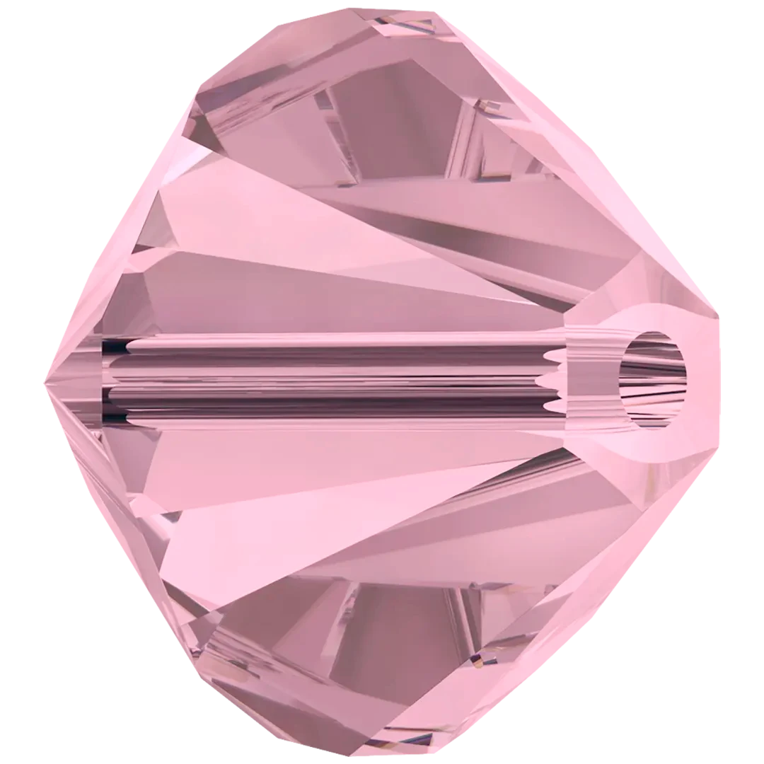 Serinity crystal beads Bicone (5328) in Crystal Antique Pink have a smooth thread hole and are multi-faceted to reflect the light, making them perfect to create bespoke designs. Serinity Bicone beads are cylindrical in shape and narrow down at both ends to create a distinctive bi-conical shape. The multi-faceted surface of these beads, which tapers towards each end, adds texture, depth, and shine to various jewellery and customized designs.