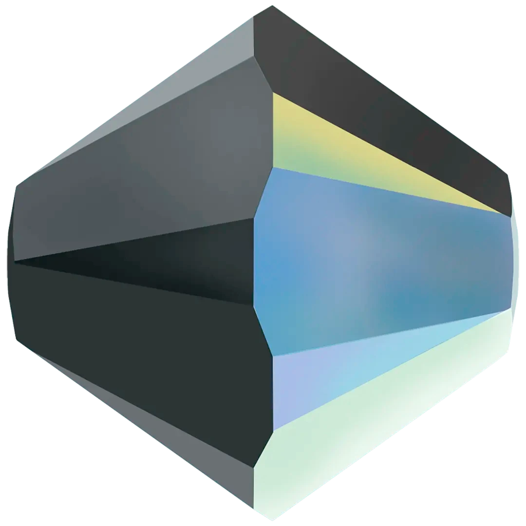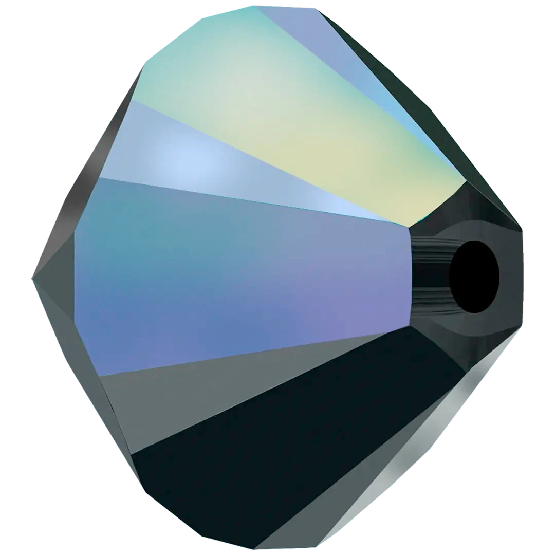 Serinity crystal beads Bicone (5328) in Jet AB have a smooth thread hole and are multi-faceted to reflect the light, making them perfect to create bespoke designs. Serinity Bicone beads are cylindrical in shape and narrow down at both ends to create a distinctive bi-conical shape. The multi-faceted surface of these beads, which tapers towards each end, adds texture, depth, and shine to various jewellery and customized designs.