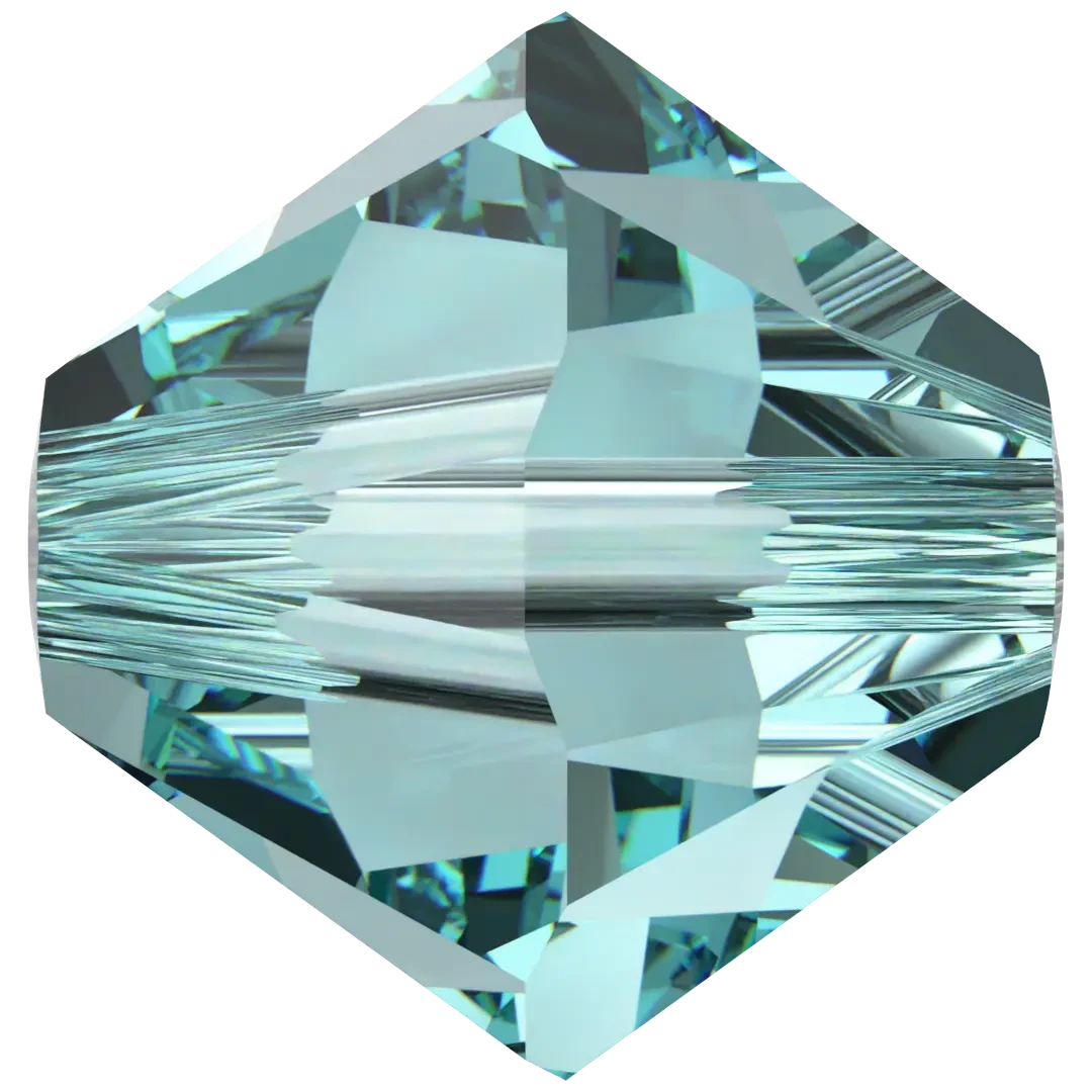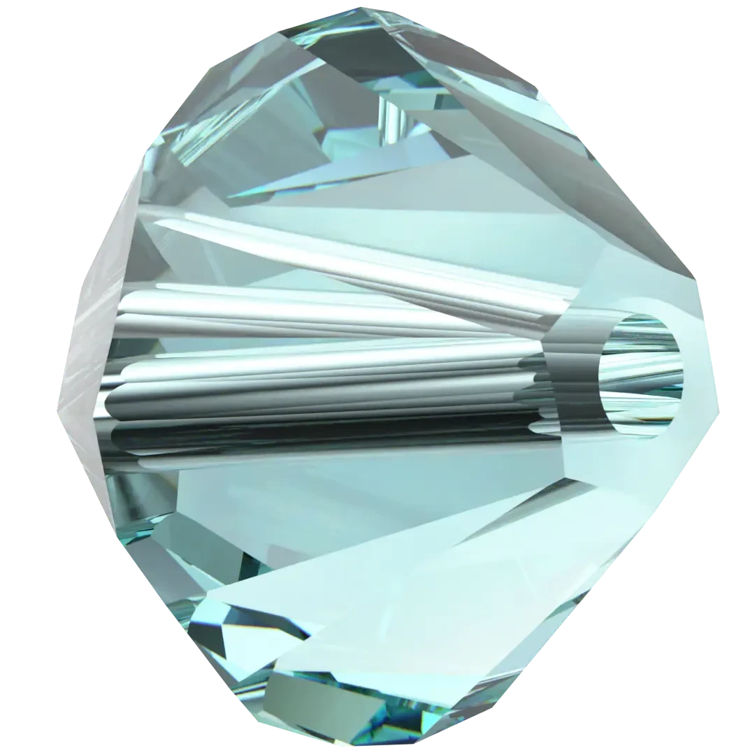 Serinity crystal beads Bicone (5328) in Light Turquoise have a smooth thread hole and are multi-faceted to reflect the light, making them perfect to create bespoke designs. Serinity Bicone beads are cylindrical in shape and narrow down at both ends to create a distinctive bi-conical shape. The multi-faceted surface of these beads, which tapers towards each end, adds texture, depth, and shine to various jewellery and customized designs.