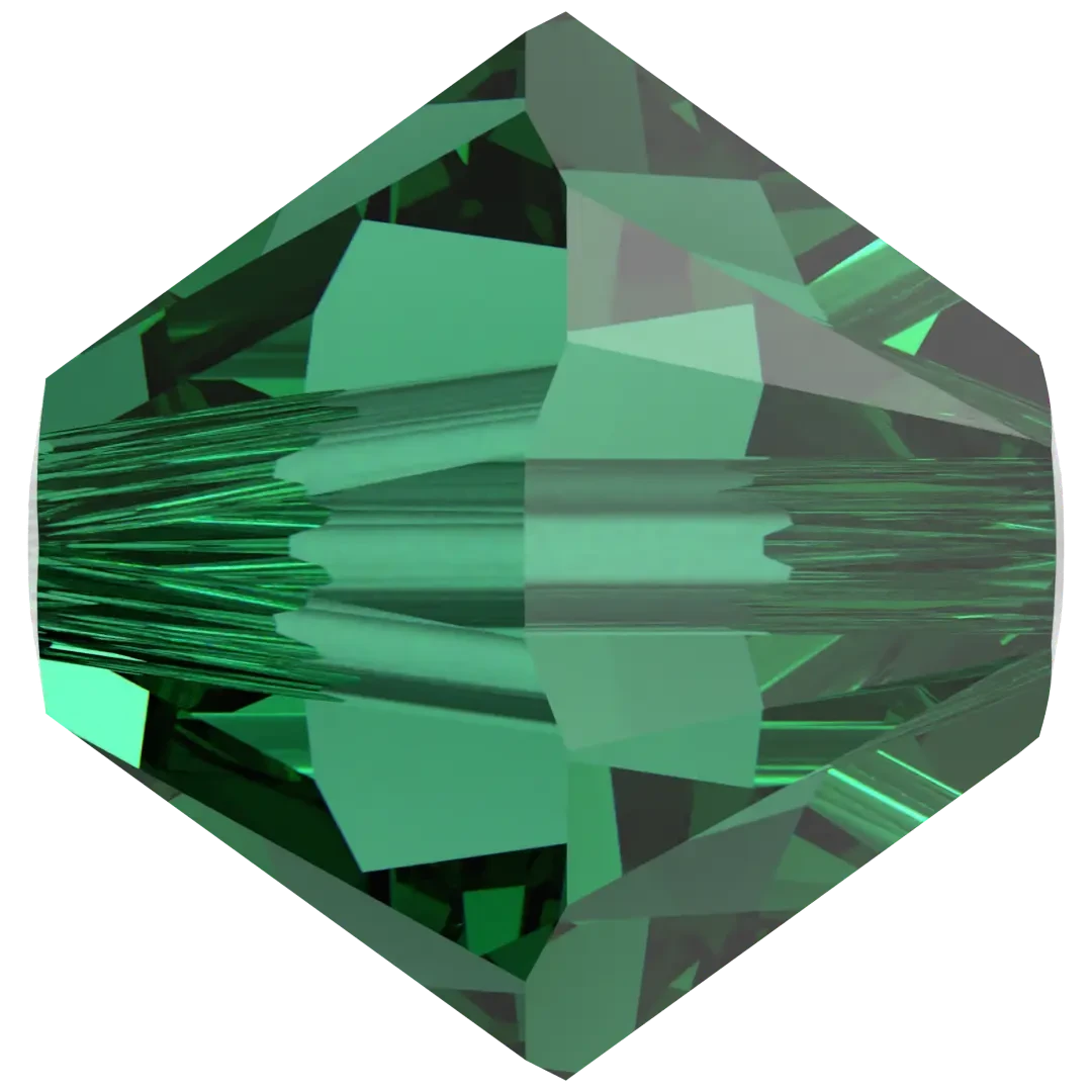 Serinity crystal beads Bicone (5328) in Majestic Green have a smooth thread hole and are multi-faceted to reflect the light, making them perfect to create bespoke designs. Serinity Bicone beads are cylindrical in shape and narrow down at both ends to create a distinctive bi-conical shape. The multi-faceted surface of these beads, which tapers towards each end, adds texture, depth, and shine to various jewellery and customized designs.