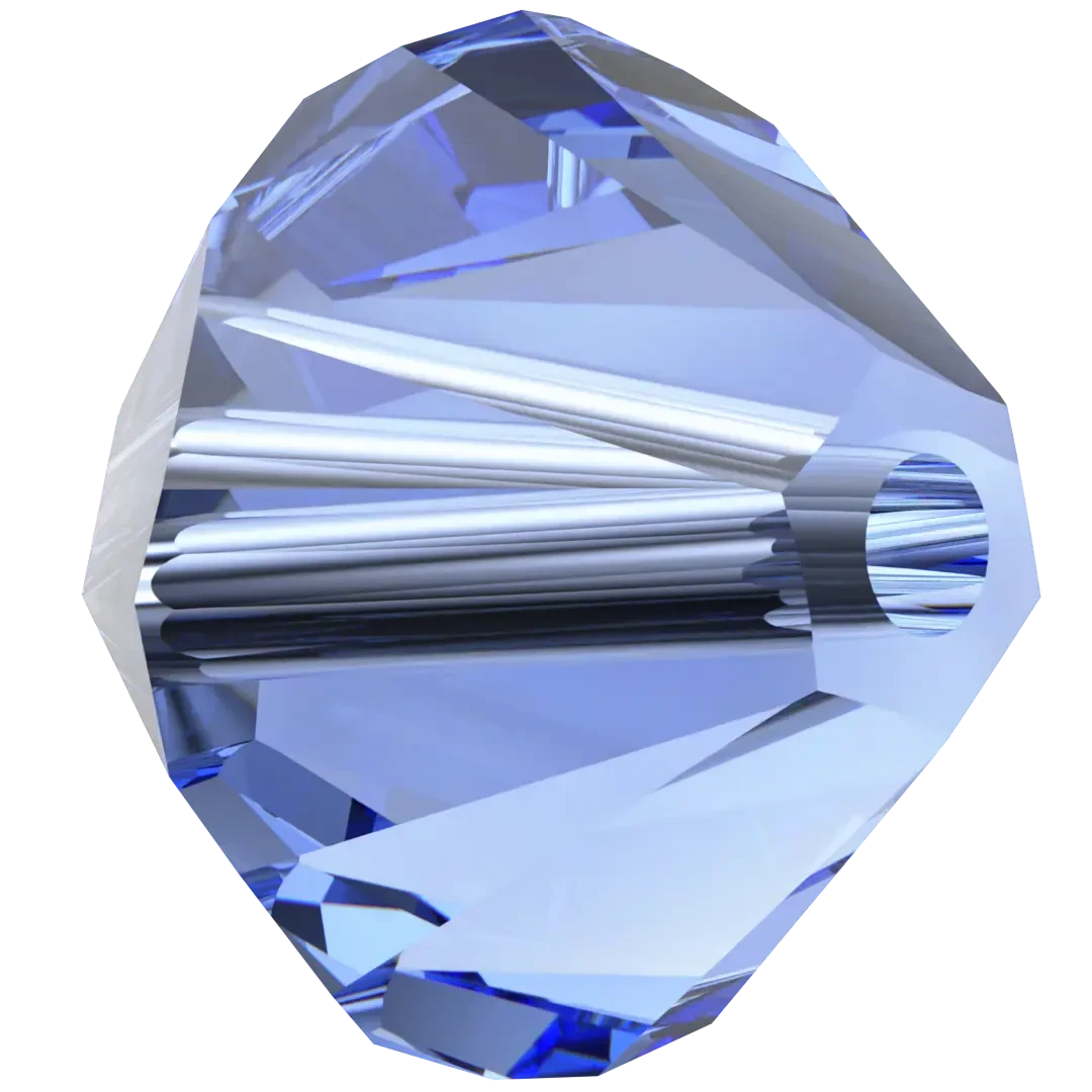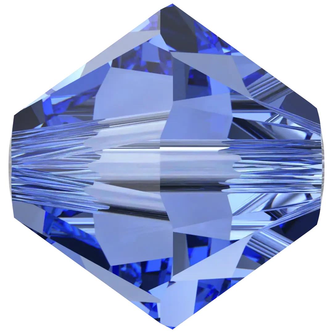 Serinity crystal beads Bicone (5328) in Sapphire have a smooth thread hole and are multi-faceted to reflect the light, making them perfect to create bespoke designs. Serinity Bicone beads are cylindrical in shape and narrow down at both ends to create a distinctive bi-conical shape. The multi-faceted surface of these beads, which tapers towards each end, adds texture, depth, and shine to various jewellery and customized designs.