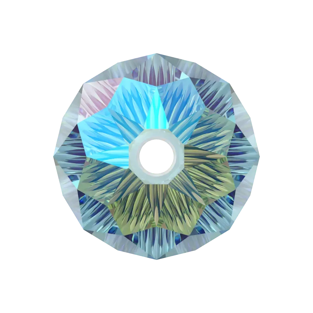 Aquamarine Shimmer 2X is a light and refreshing shade of blue-green with a subtle shimmer effect. The colour is inspired by the tranquil and clear waters of the ocean, and it is often used in jewelry and fashion designs to evoke a sense of serenity, peace, and relaxation. The shimmer effect adds a touch of sparkle and glamour to the colour, making it perfect for special occasions and formal events. Aquamarine Shimmer 2X can also be incorporated into interior design and home decor to create a calming and refreshing atmosphere. The shimmer coating gives the colour a milder variant of the Aurora Borealis (AB) effect, providing a more subdued glittery appearance. The 2X indicates that the coating is on both sides of the crystal.