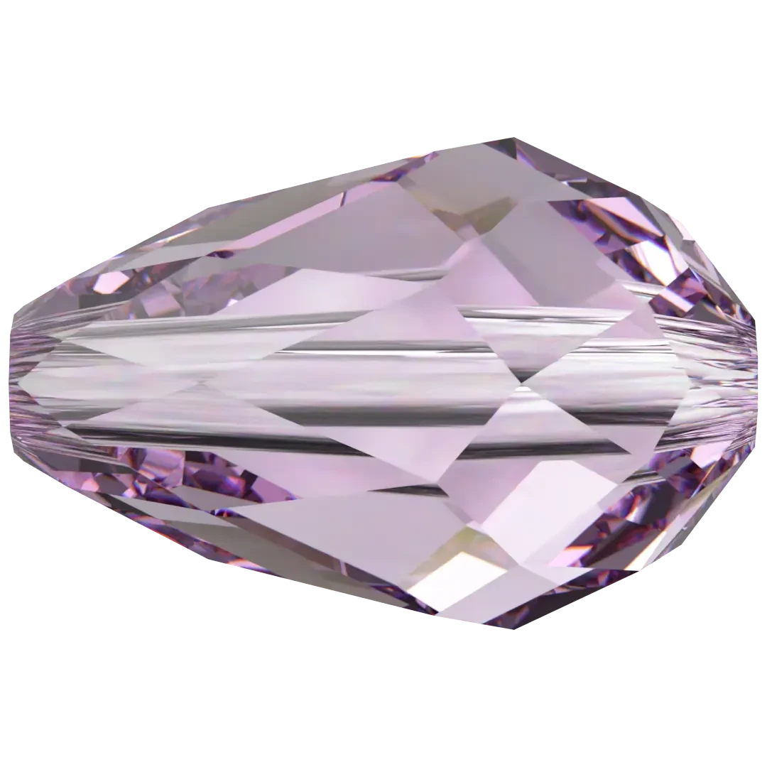 Serinity crystal beads Drop (5500) in Light Amethyst have a smooth thread hole and are multi-faceted to reflect the light, making them perfect to create bespoke designs. Serinity Drop shaped crystals feature a unique drop design that tapers from a smaller top to a wider bottom, giving it the appearance of a droplet.