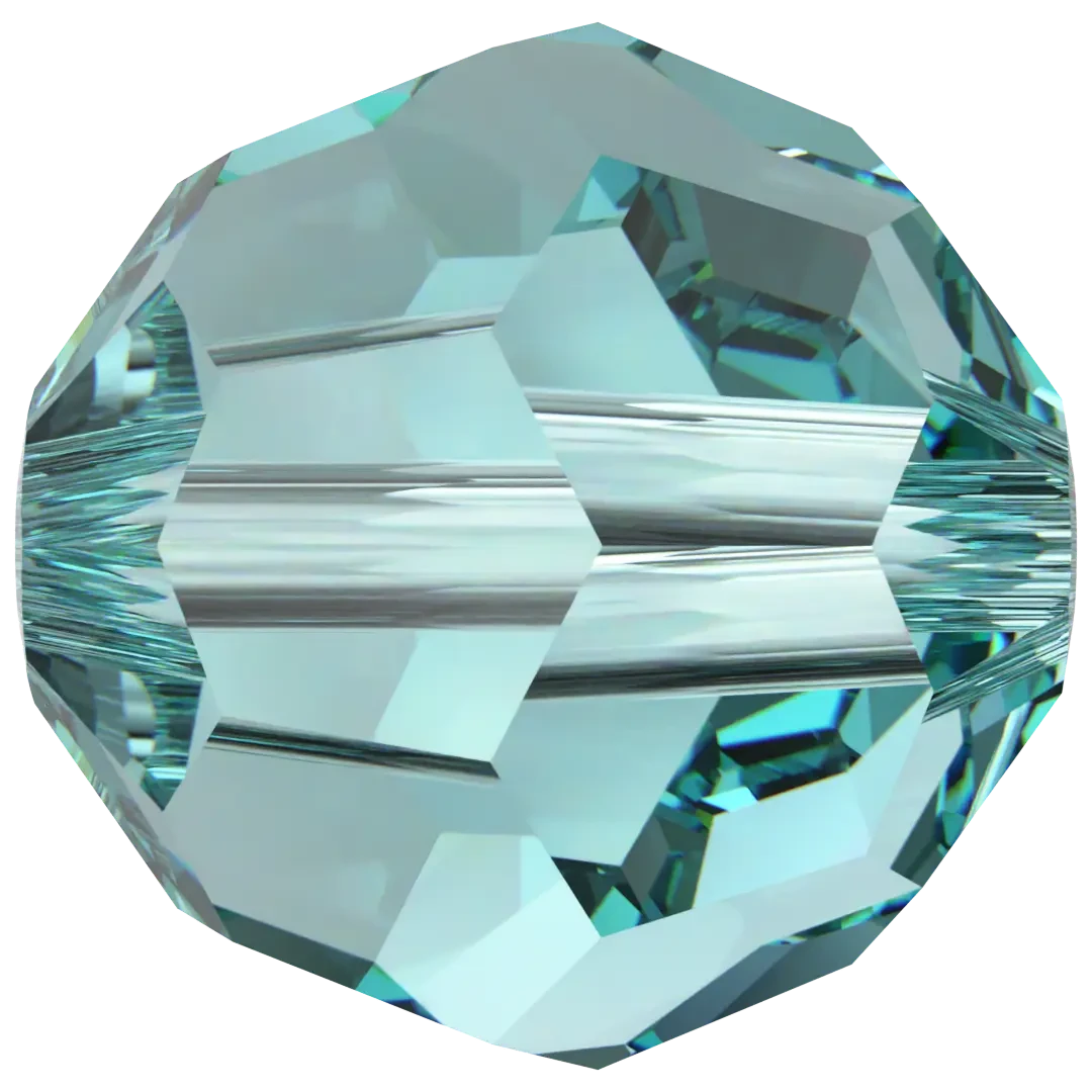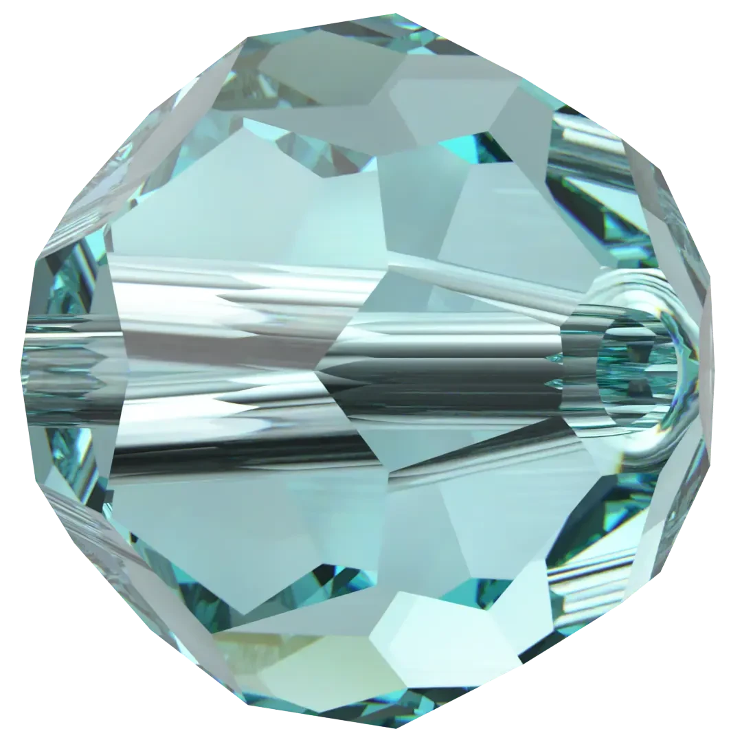 Serinity crystal beads Round (5000) in Light Turquoise have a smooth thread hole and are multi-faceted to reflect the light, making them perfect to create bespoke designs. Serinity Round shaped beads are a popular choice in jewellery making due to their versatility, range of sizes, and extensive colour options. These beads are perfectly shaped into a uniform sphere with precise faceting that creates a sparkling effect, reflecting light from various angles.