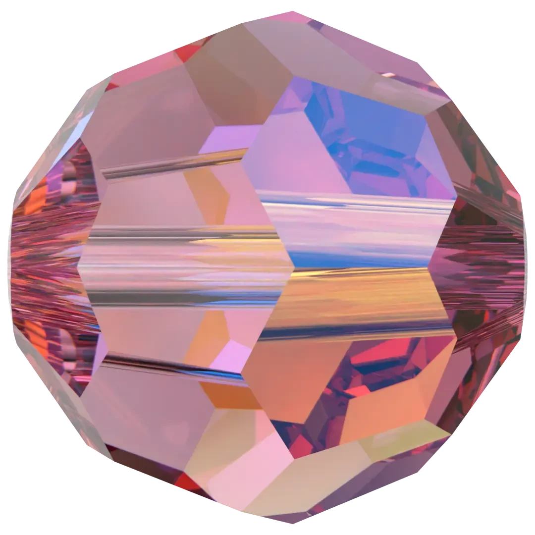Serinity crystal beads Round (5000) in Rose AB have a smooth thread hole and are multi-faceted to reflect the light, making them perfect to create bespoke designs. Serinity Round shaped beads are a popular choice in jewellery making due to their versatility, range of sizes, and extensive colour options. These beads are perfectly shaped into a uniform sphere with precise faceting that creates a sparkling effect, reflecting light from various angles.
