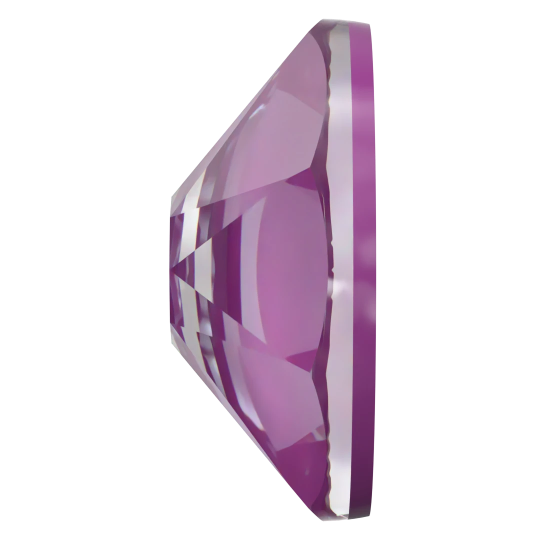 Serinity rhinestones non hotfix Round (2000, 2058 & 2088) in Crystal Orchid Ignite UNFOILED are flat back crystals that can easily be applied to most surfaces with glue. Crystal Orchid Ignite is a vibrant, rich shade of purple that blends the deep tones of traditional purple with a touch of pink and blue, creating a lush and exotic appearance. It is reminiscent of the petals of an orchid flower, which often exhibit a dazzling and luxurious hue. Crystal Orchid Ignite has a slightly warmer and more playful feel than standard purple, with its subtle pink undertones providing a sense of softness and femininity. The colour is striking and elegant, evoking feelings of creativity, mystery, and sophistication. The Ignite effect enhances the facets of the crystal to reflect as much light as possible and intensify the colour.