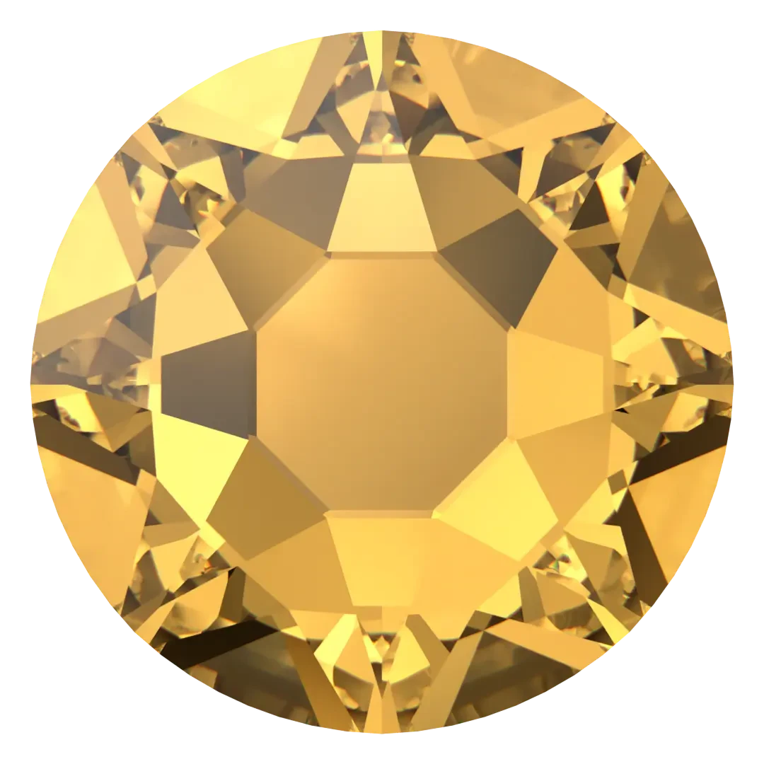 Serinity rhinestones non hotfix Round (2000, 2058 & 2088) in Golden Topaz are flat back crystals that can easily be applied to most surfaces with glue. Golden Topaz is a warm, bright shade of yellow that is reminiscent of the precious metal gold. It is a highly reflective colour that often evokes feelings of luxury, wealth, and elegance. Golden Topaz has a rich, deep, almost orange-like hue and is a versatile colour that can be both bold and subtle, and it is often associated with celebration and achievement. Golden Topaz is a popular colour in fashion, and jewellery design, and can add a touch of glamour and sophistication to any context.