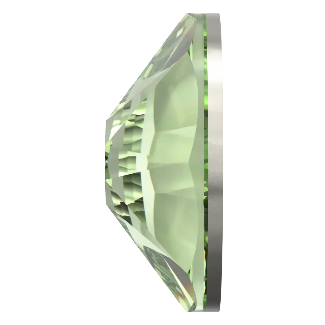 Serinity rhinestones non hotfix Round (2000, 2058 & 2088) in Peridot are flat back crystals that can easily be applied to most surfaces with glue. Peridot is a vibrant green-yellow shade resembling the colour of fresh grass or the inside of a juicy lime. It is a bright and eye-catching colour that is associated with nature, freshness, and new growth. The colour has a lightness to it and is often associated with warmth, happiness, and positivity. Peridot is a popular colour for jewellery and clothing items and is a great choice for summer and spring outfits due to its fresh and lively appearance.
