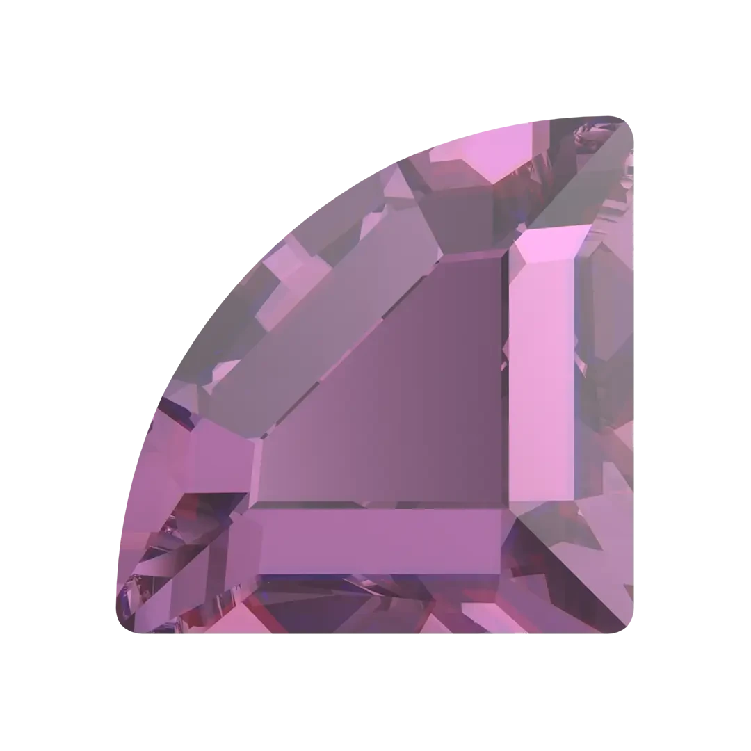 Serinity rhinestones non hotfix Connector (2715) in Amethyst are flat back crystals that can easily be applied to most surfaces with glue. Serinity Connector flatback crystals have a triangular shape featuring two straight edges that meet at a curved edge.