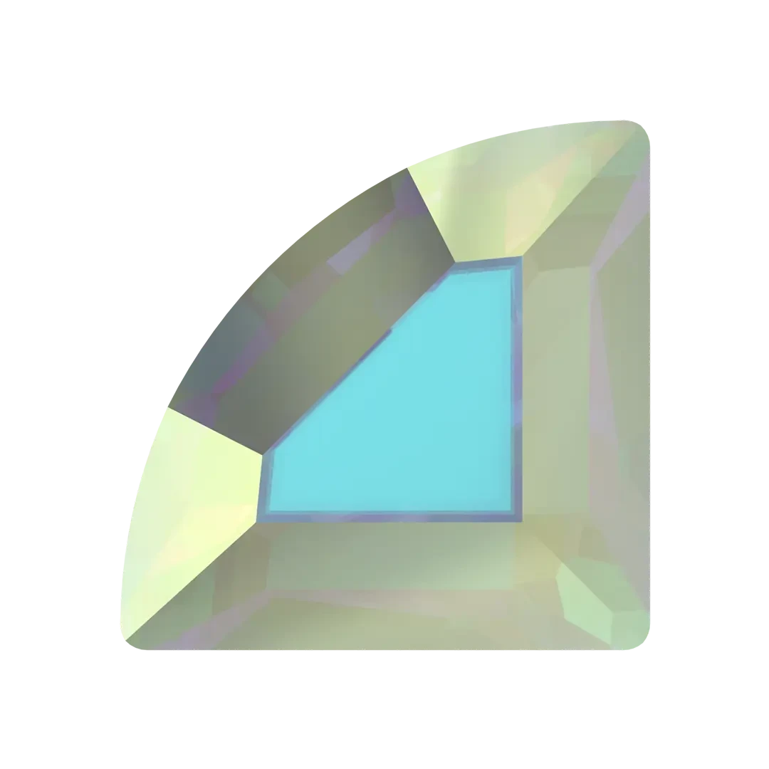 Serinity rhinestones non hotfix Connector (2715) in Crystal AB are flat back crystals that can easily be applied to most surfaces with glue. Serinity Connector flatback crystals have a triangular shape featuring two straight edges that meet at a curved edge.