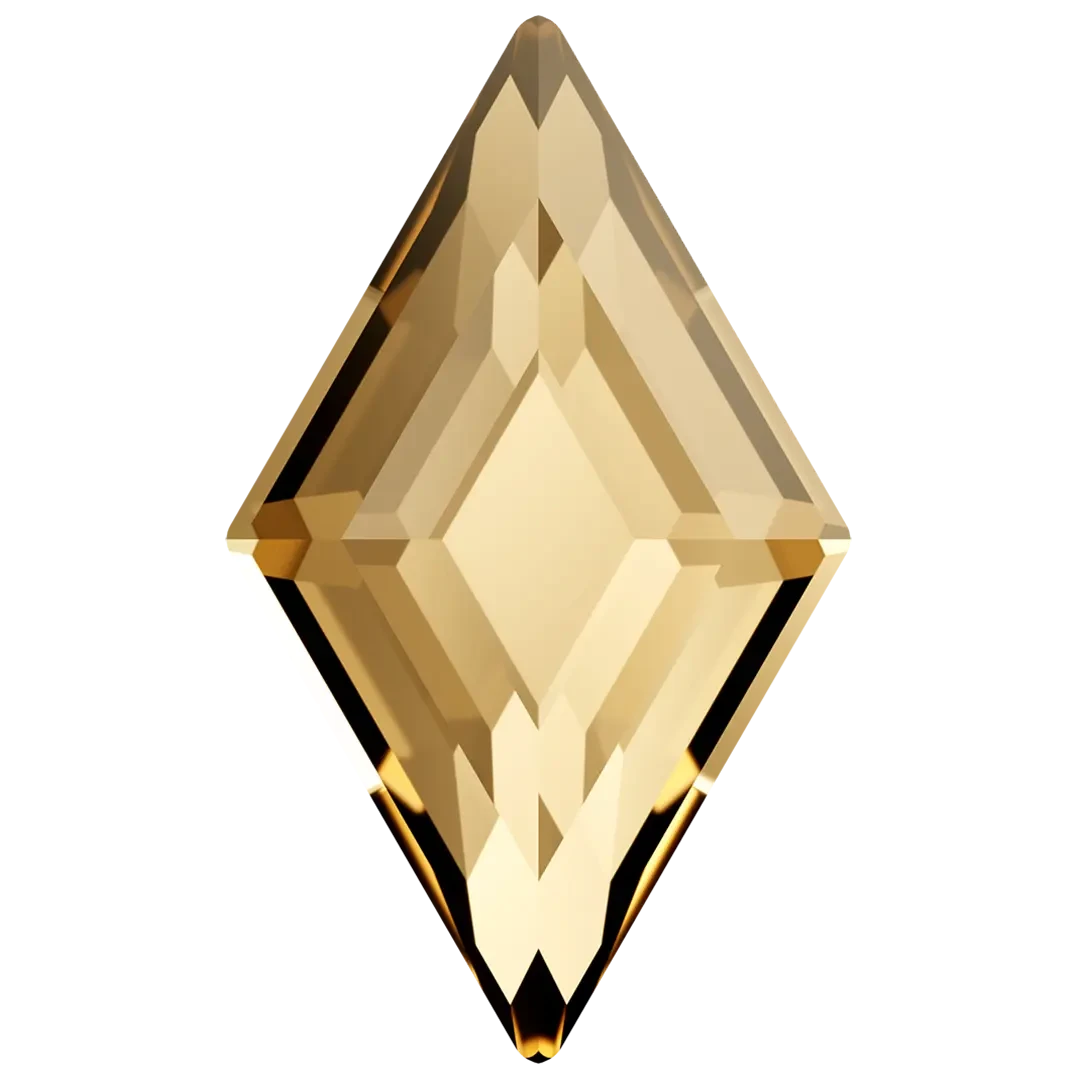 Serinity rhinestones non hotfix Diamond (2773) in Crystal Golden Shadow are flat back crystals that can easily be applied to most surfaces with glue. Serenity Diamond shaped flat back crystals possess a precise and symmetrical diamond shape with a pointed top. These crystals are known for their ability to reflect light and create an eye-catching sparkle due to the specific arrangement of their facets.