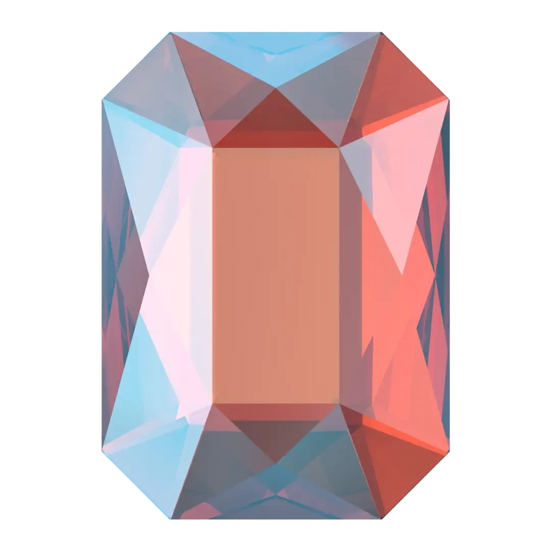 Serinity rhinestones non hotfix Emerald Cut (2602) in Light Siam Shimmer are flat back crystals that can easily be applied to most surfaces with glue. Serinity Emerald Cut crystal is crafted to resemble the shape of a precious emerald gemstone, featuring a rectangular shape with cut corners. Its flat top surface is typically faceted, resulting in a distinctive step-like pattern. The Emerald Cut is renowned for its refined and sophisticated look, and it is frequently utilized in luxury jewellery and high-fashion creations.