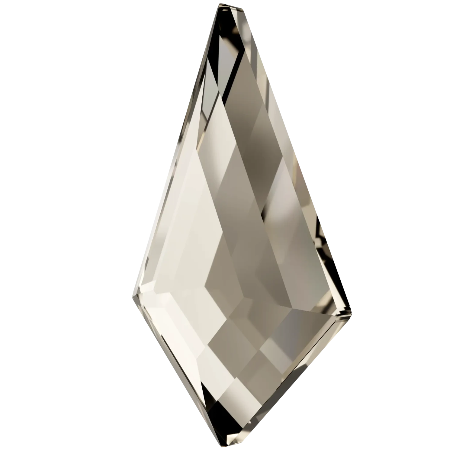 Serinity rhinestones non hotfix Kite (2771) in Crystal Silver Shade are flat back crystals that can easily be applied to most surfaces with glue. Serinity Kite shaped crystals feature a diamond-shaped design with two pointed ends and two shorter sides, resembling the shape of a kite. The crystal has a flat top surface and bevelled edges, which create a multi-faceted effect that reflects and refracts light from various angles, resulting in a dazzling and eye-catching appearance.