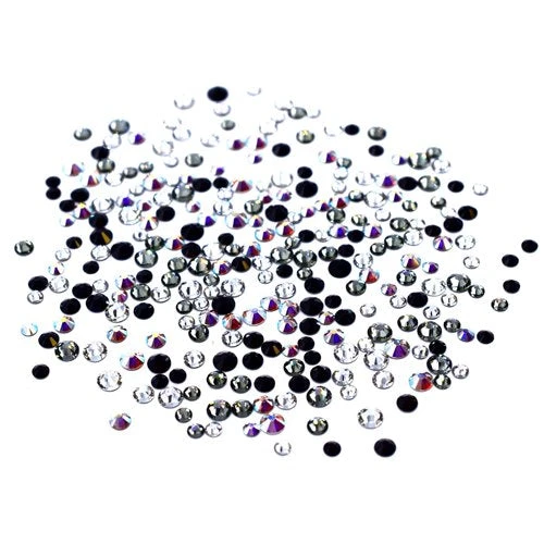 Serinity rhinestones Twilight mix contains a variety of round flat back crystals in variety of Crystal and black colours. Popular with nail technicians and embellishment artists, this mix is a cost effective way to purchase a selection of different crystals.